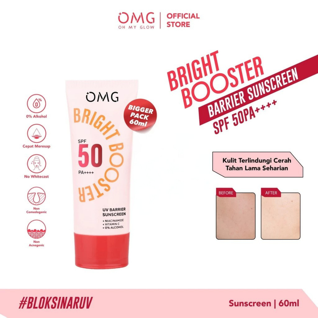 OMG Oh My Glow Bright Booster UV Barrier Sunscreen SPF 50 PA++++ - 25ml | 60ml | Beauteamor