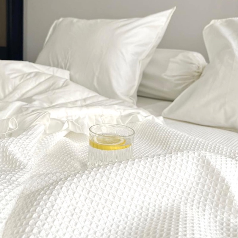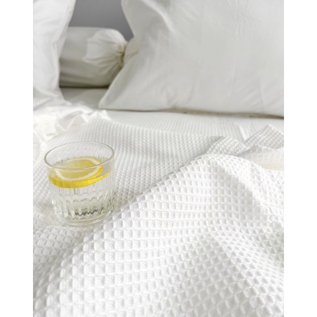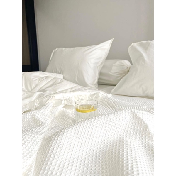 WAFFLE THROW BLANKET - Selimut Katun Tenun Rajut Selimut Hotel Korea Jepang Aesthetic
