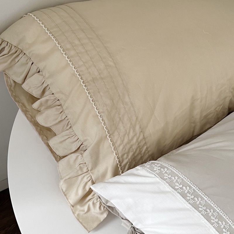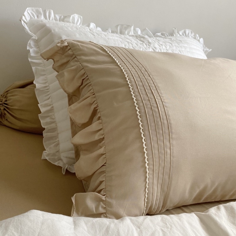 HANA LACE RUFFLE SOFT COTTON PILLOWCASE - Sarung Bantal Katun Halus Lace Renda Korea Shabby Chic Polos Aesthetic Estetik Pinterest