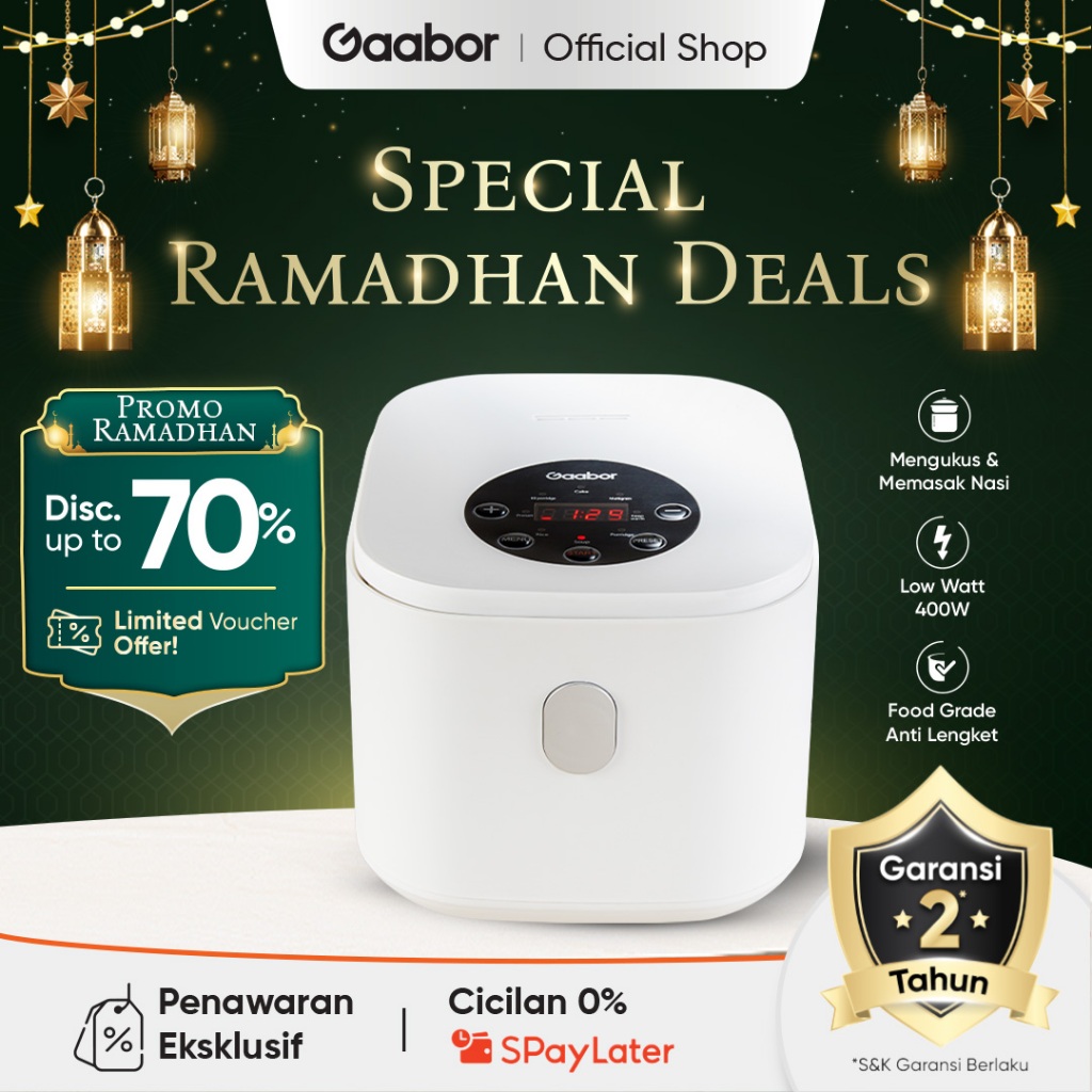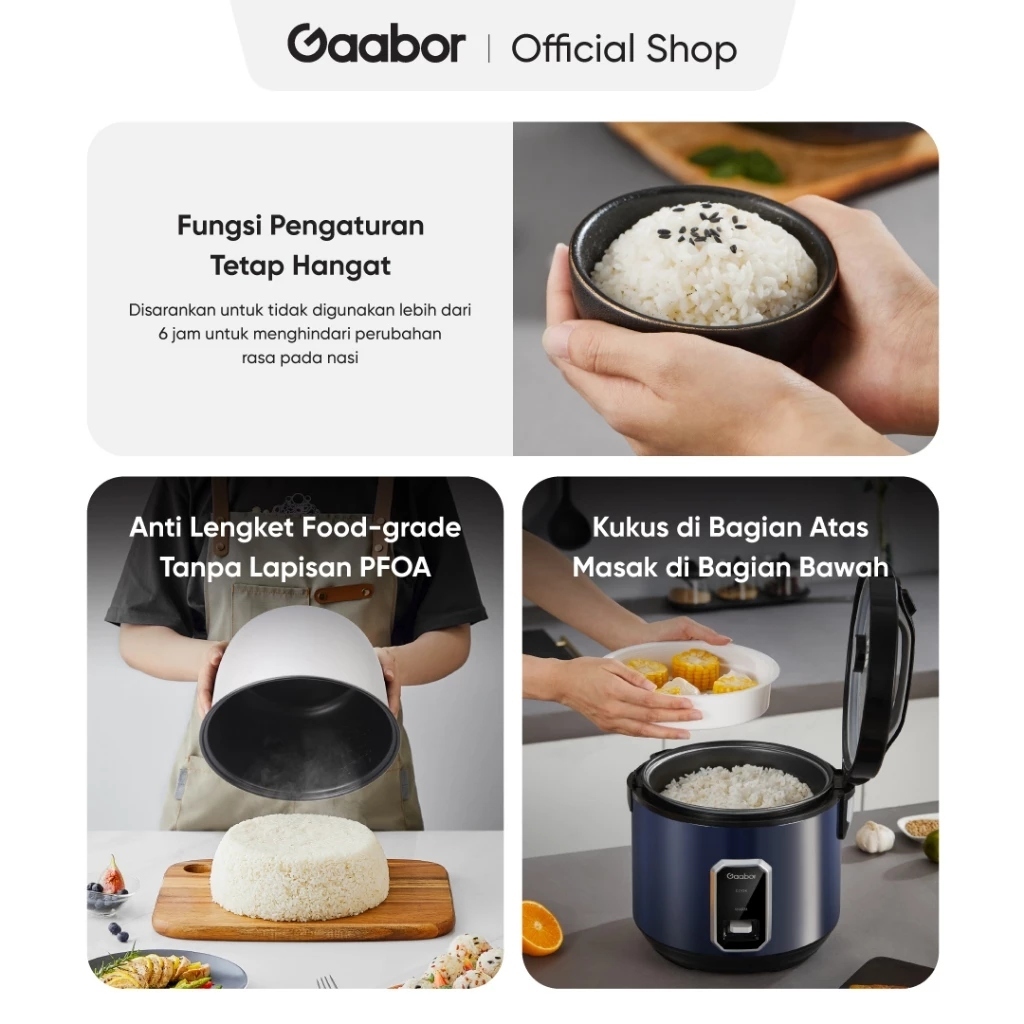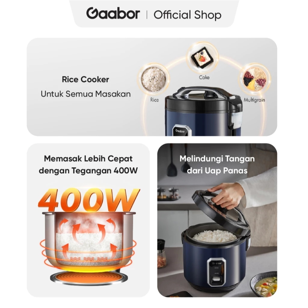 Gaabor Rice Cooker Digital 2,2 Liter Penanak Nasi Serbaguna Anti Lengket Magic Com