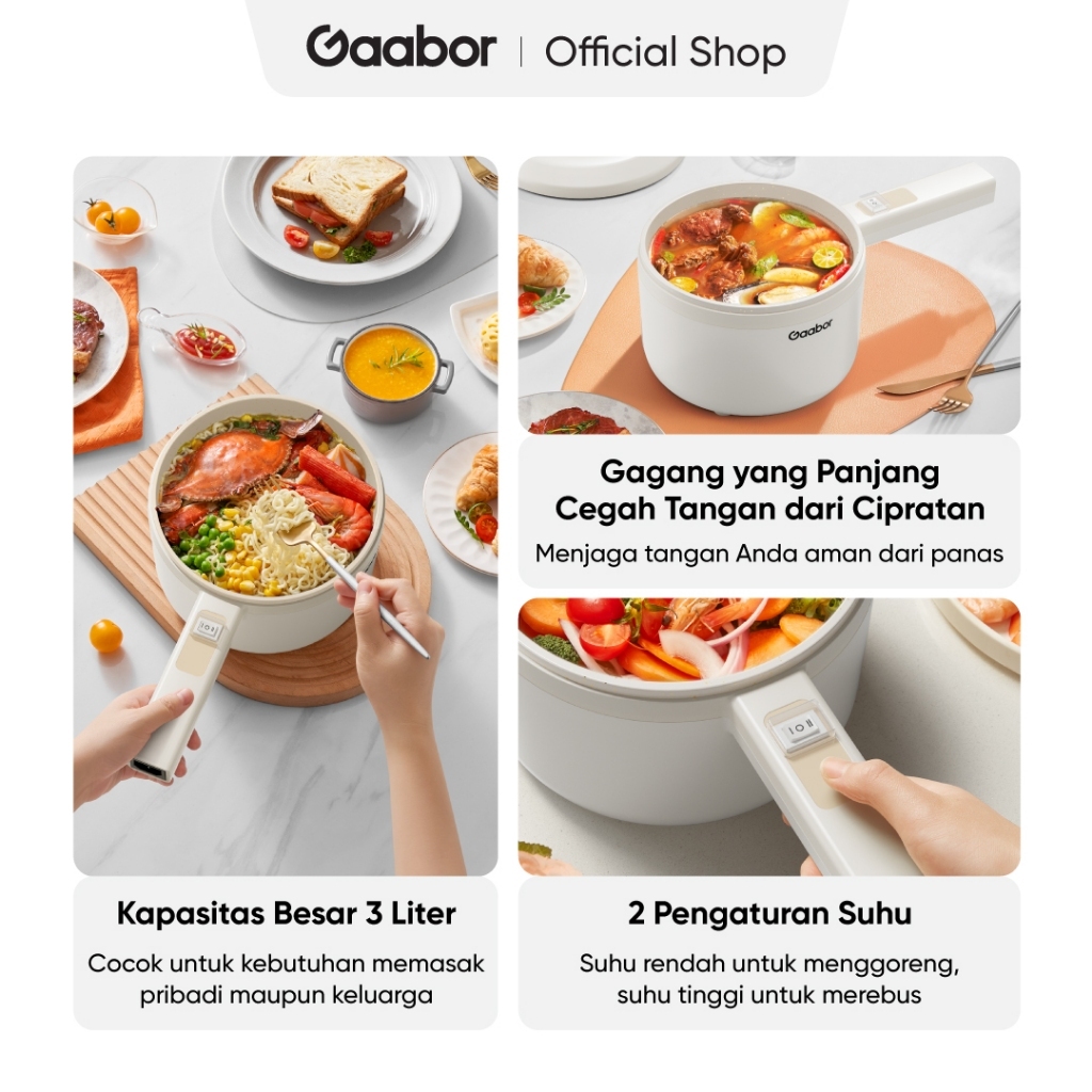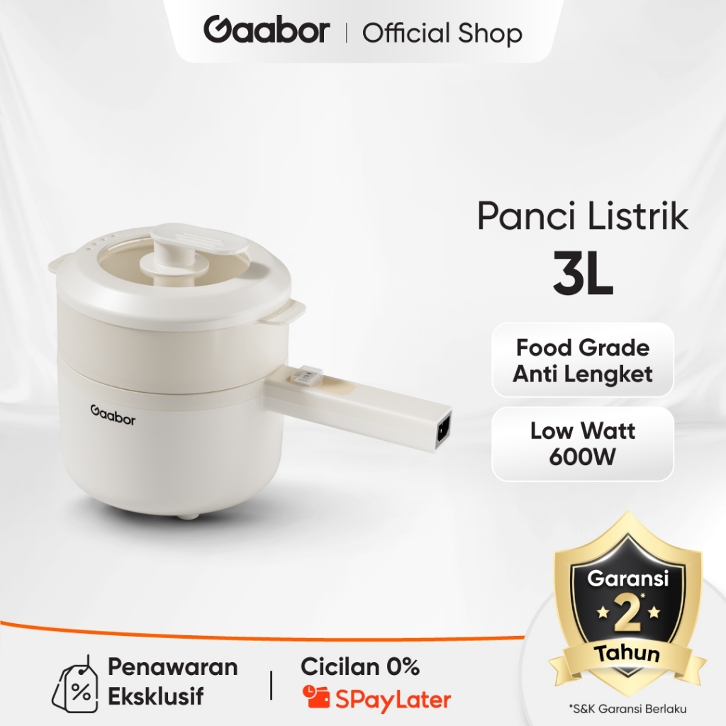 Gaabor Panci Listrik Electric Cooker Anti Lengket 3L 600W Tutup Kaca Free Kukusan / EC-30M01A