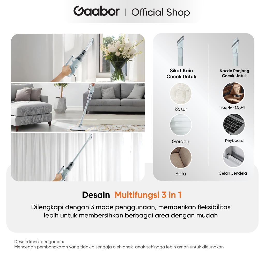 Gaabor Cleva Vacuum Cleaner 3in1 Penyedot Debu 18000Pa low watt 400W multifungsi HEPA Filter Kabel Panjang 4.5M