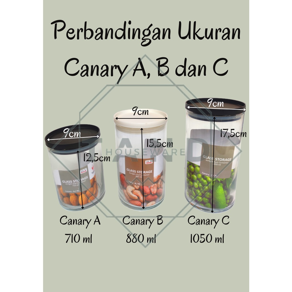 TOPLES KACA BULAT KEDAP UDARA CANARY C SET UKURAN 1050ML (6PCS) TUTUP PLASTIK