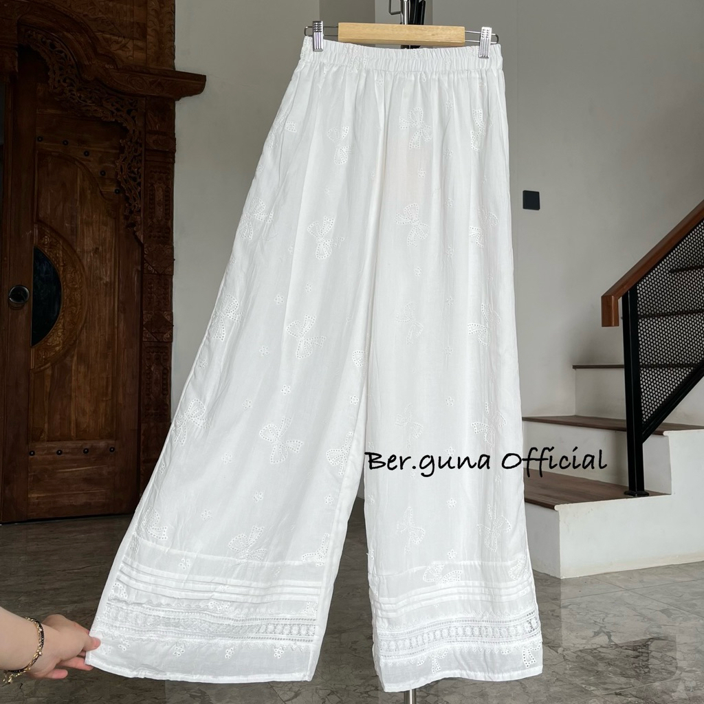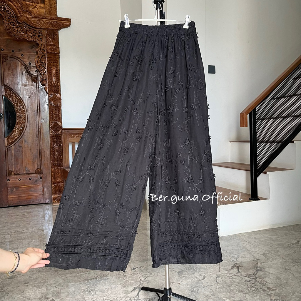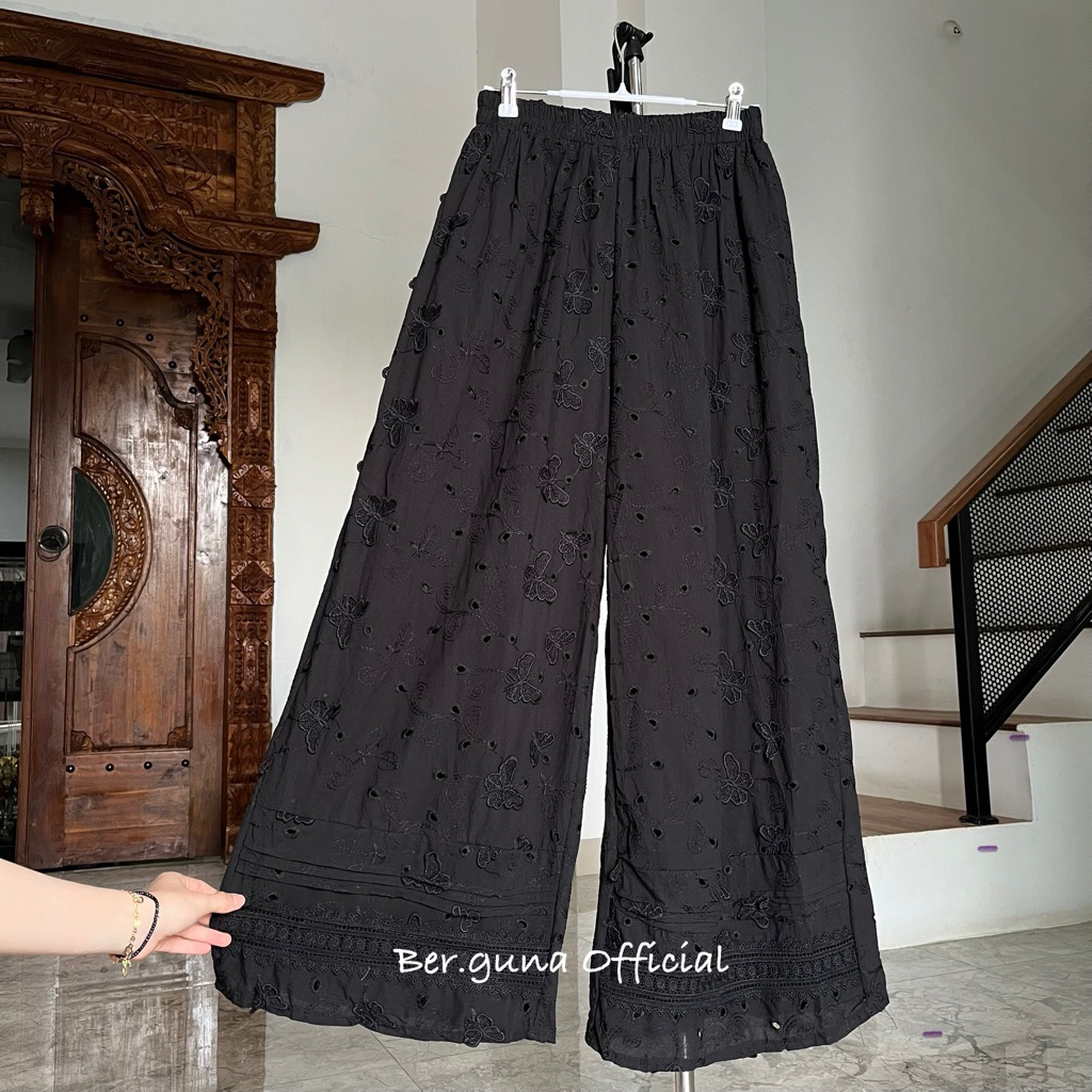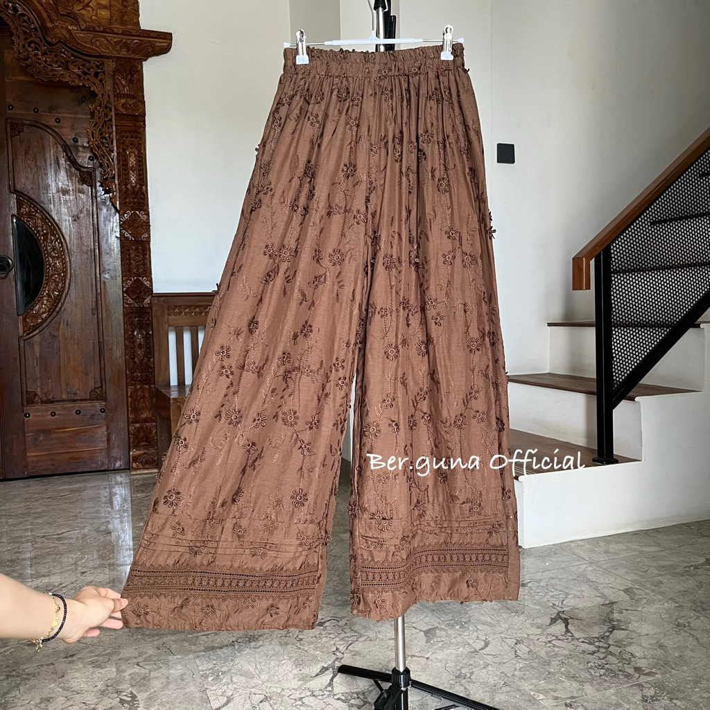 Ber.guna Celana Kulot Katun Bordir untuk Wanita