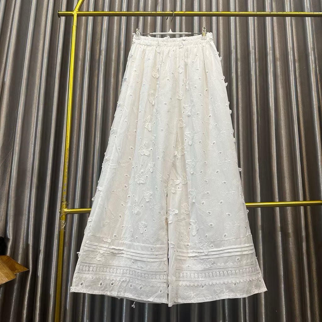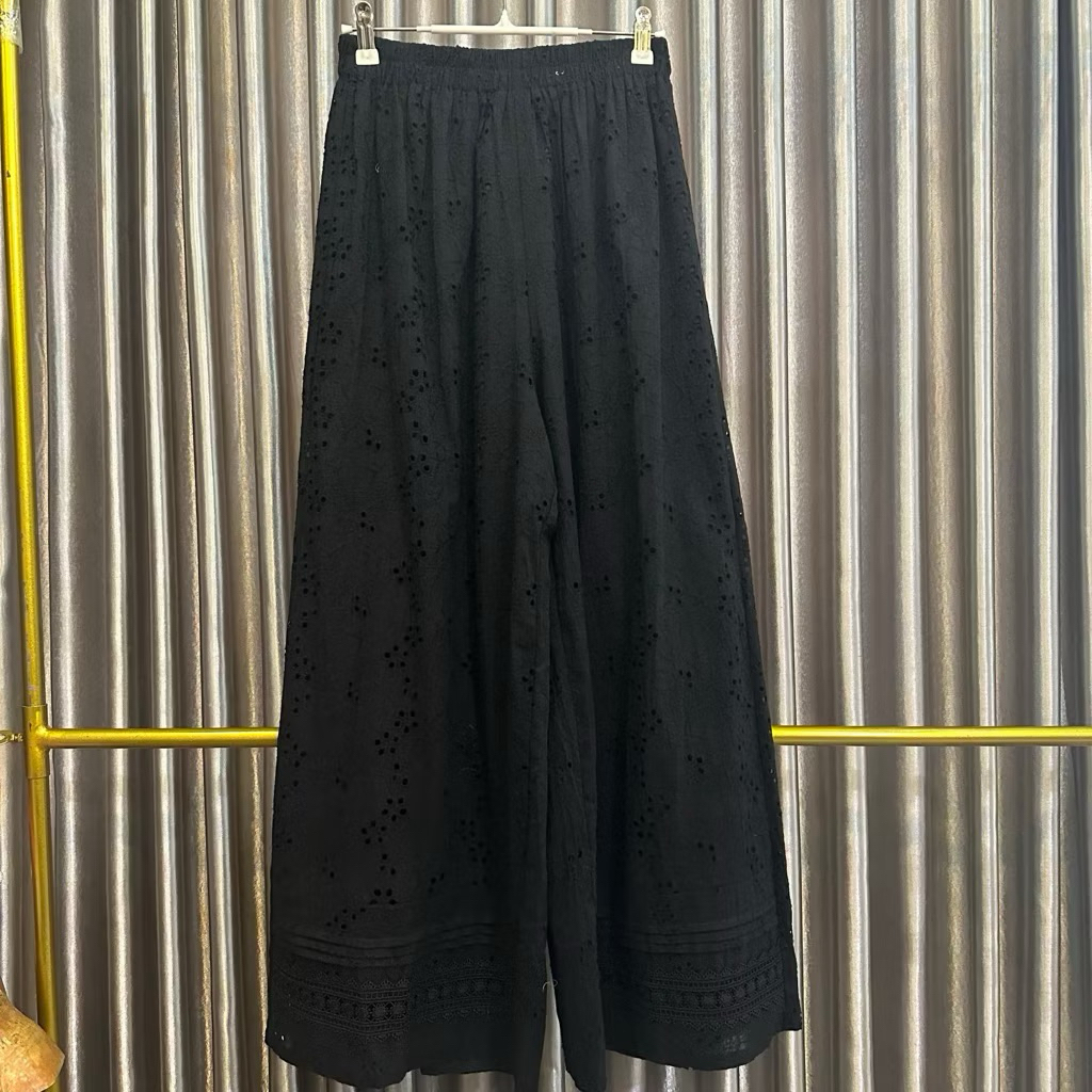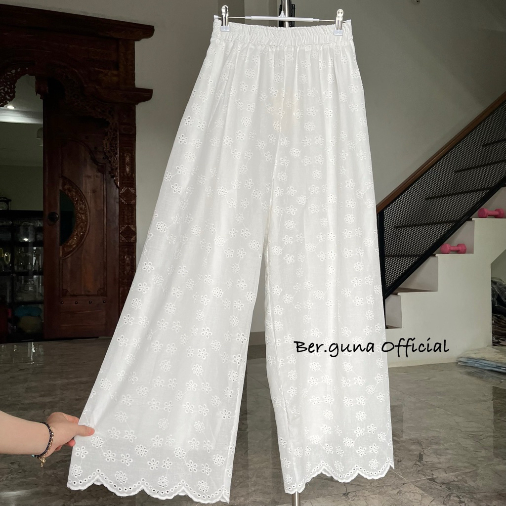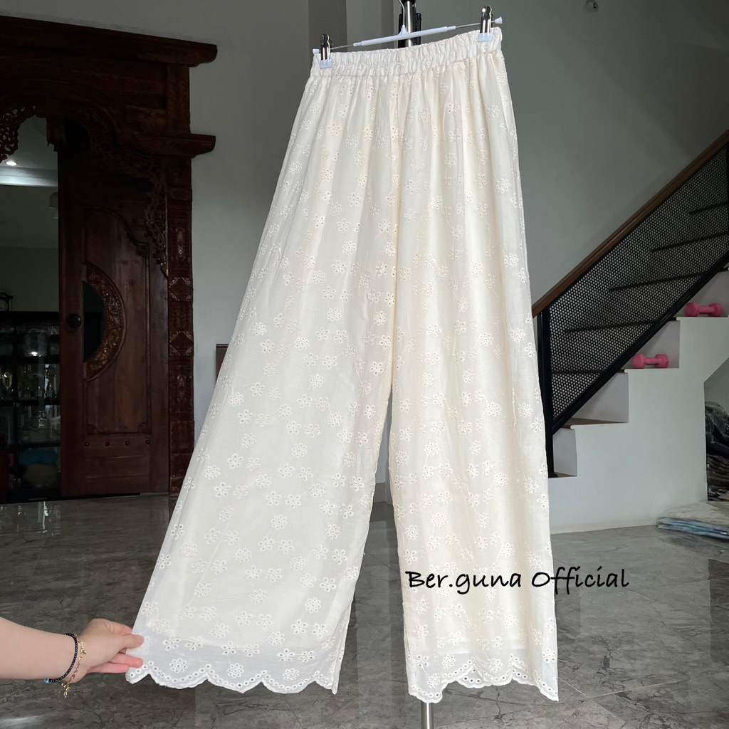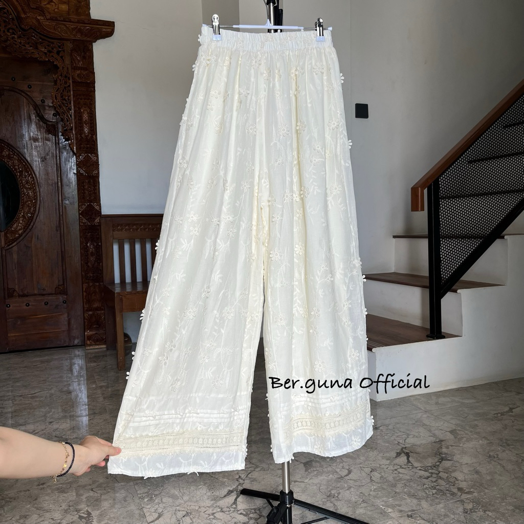 Ber.guna Celana Kulot Katun Bordir untuk Wanita
