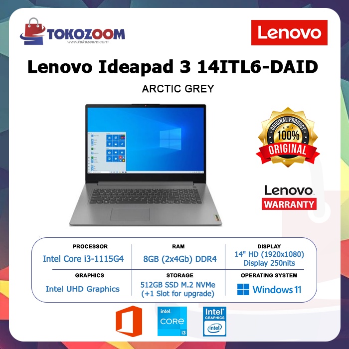 LENOVO IDEAPAD 3 14ITL6-DAID/I3-1115G4/8GB/SSD512GB/14"/WIN11+OHS/ARCTIC GREY