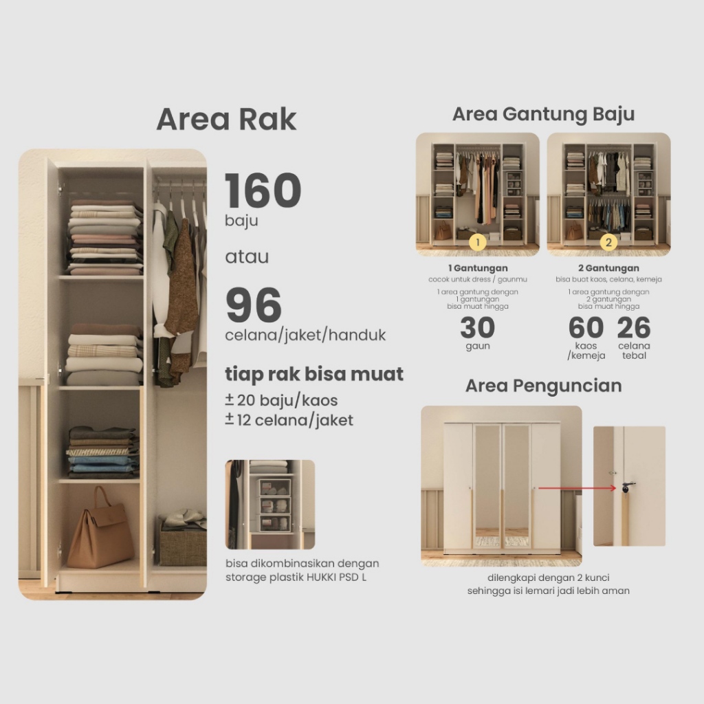 Pira Metropolis - Yona AVA 4P Lemari Pakaian 4 Pintu