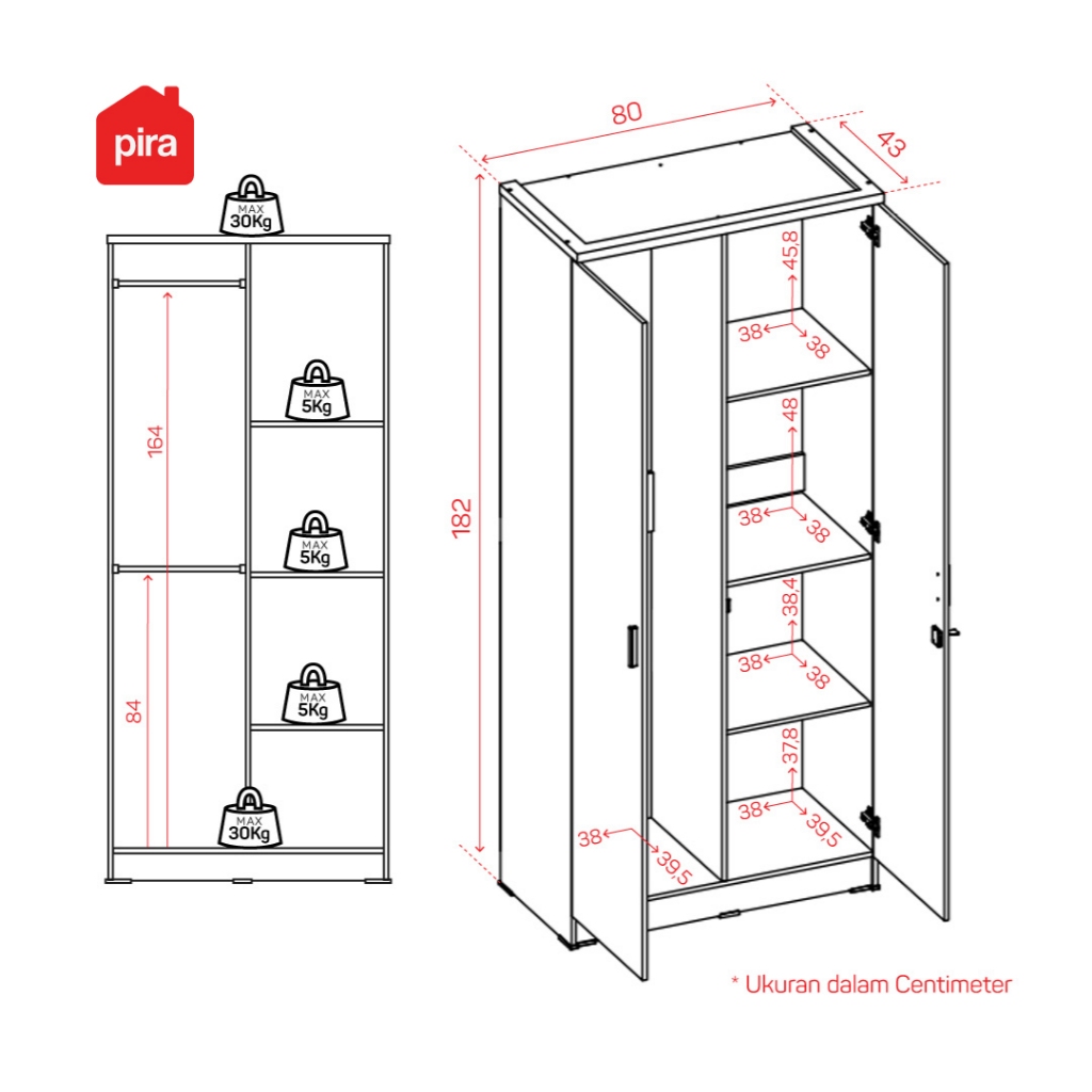 Pira Metropolis OX - Aruna 2P A Lemari Pakaian 2 Pintu