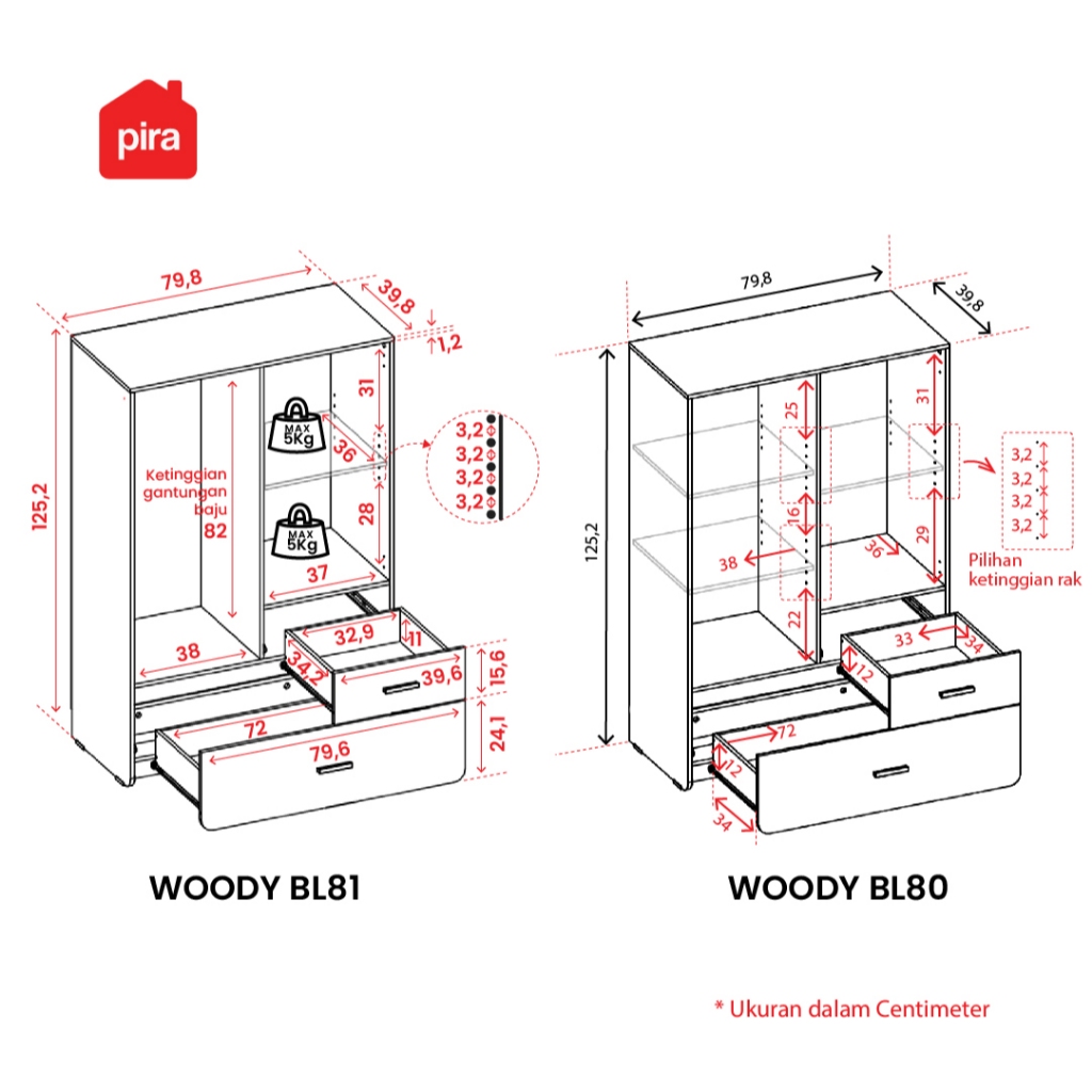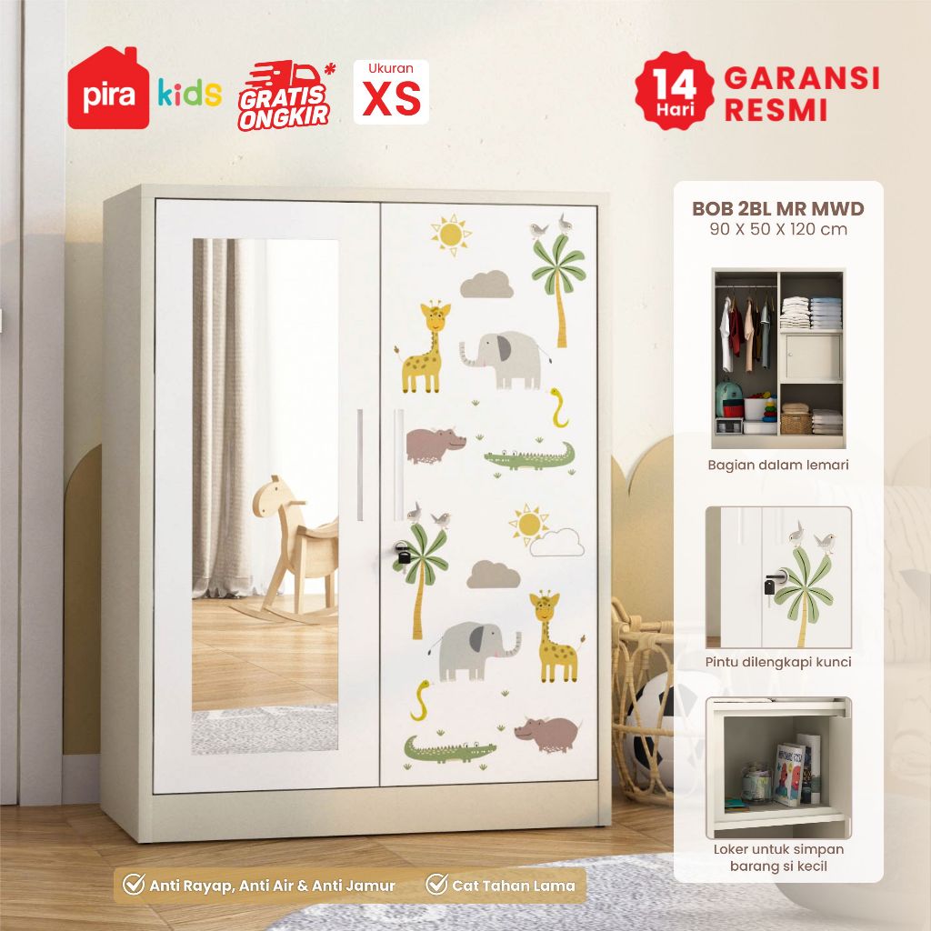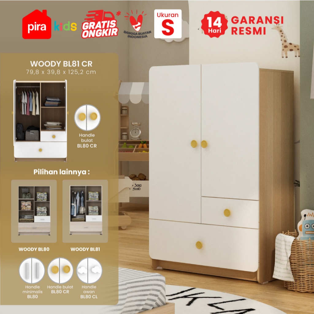 Pira Kids - Woody BL80 Lemari Pakaian Anak 2 Pintu Full Rak