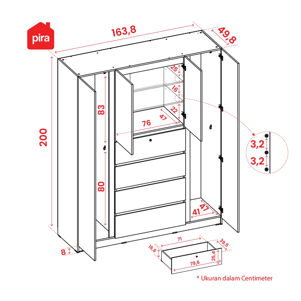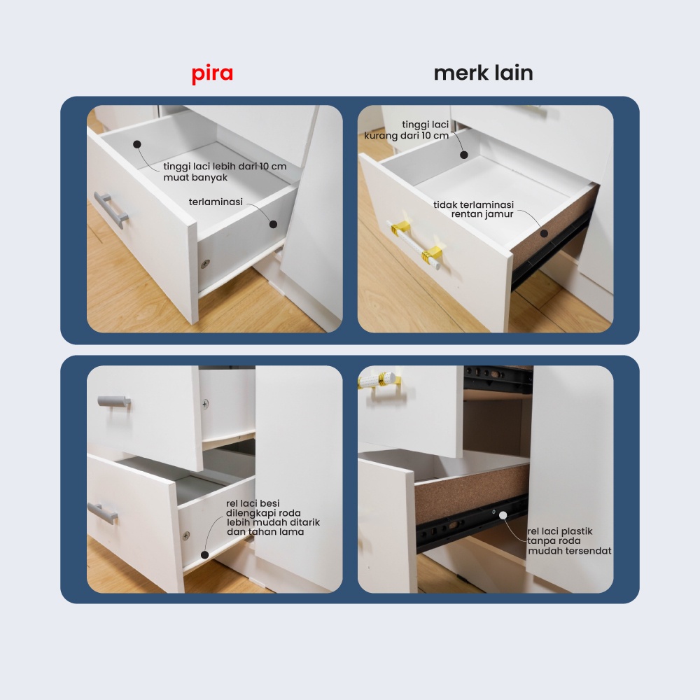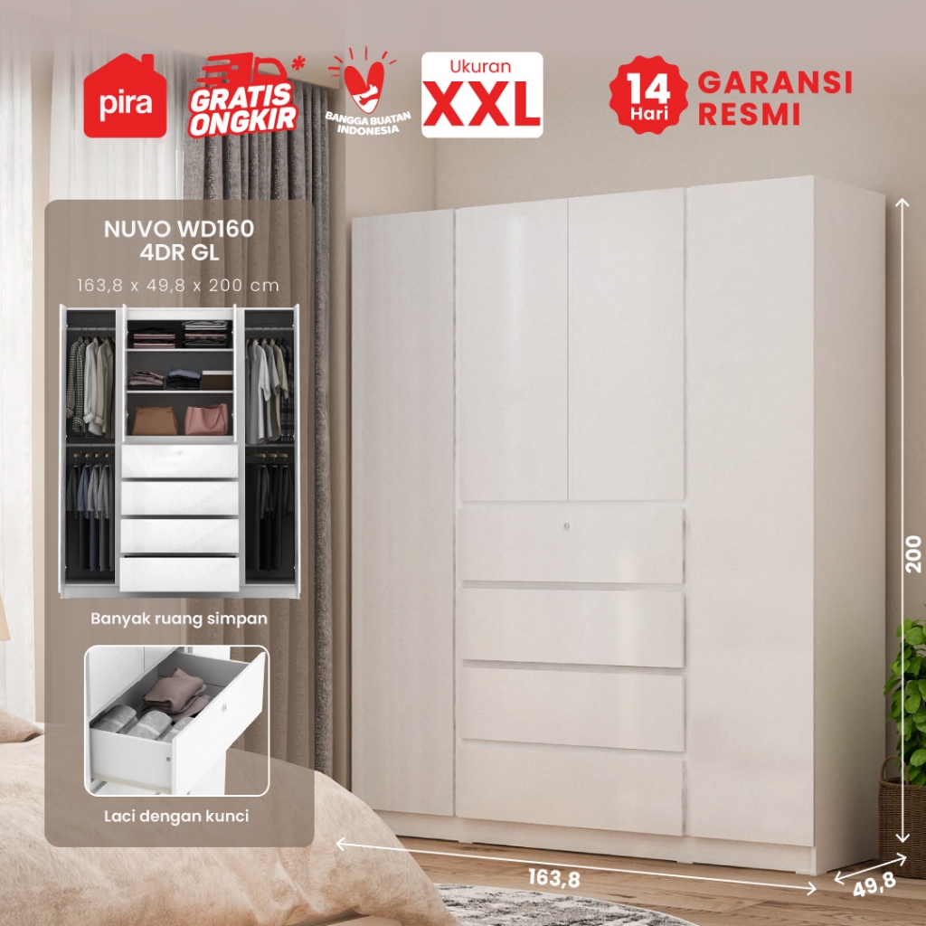Pira Bavarian - Nuvo WD160 4DR Lemari Pakaian 4 Pintu dengan Laci