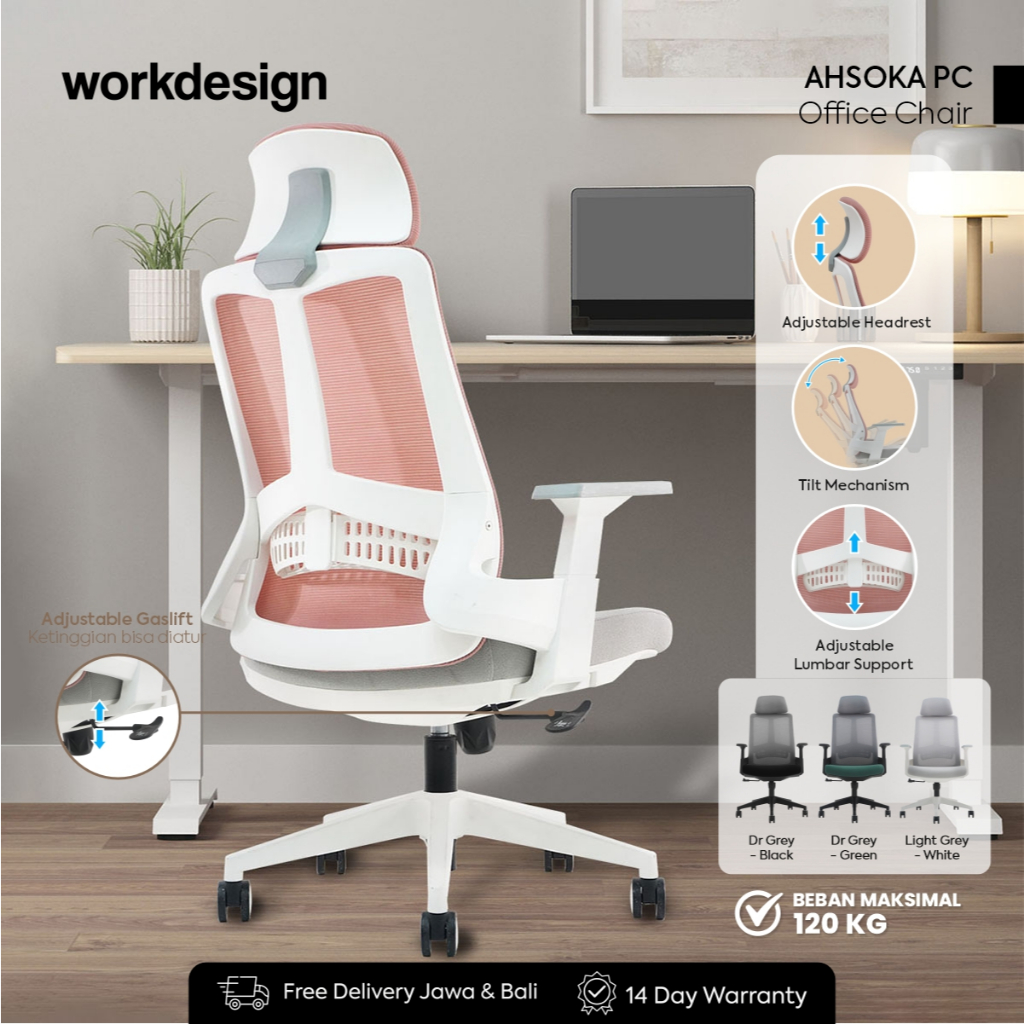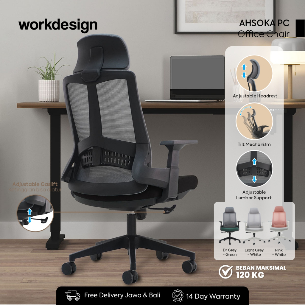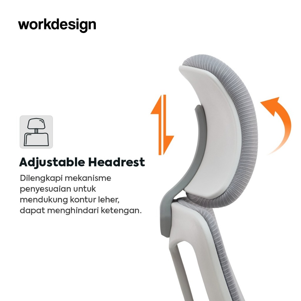Workdesign - Ahsoka PC Kursi Kantor / Kursi Kerja Ergonomis dengan Sandaran Kepala dan Lumbar Support