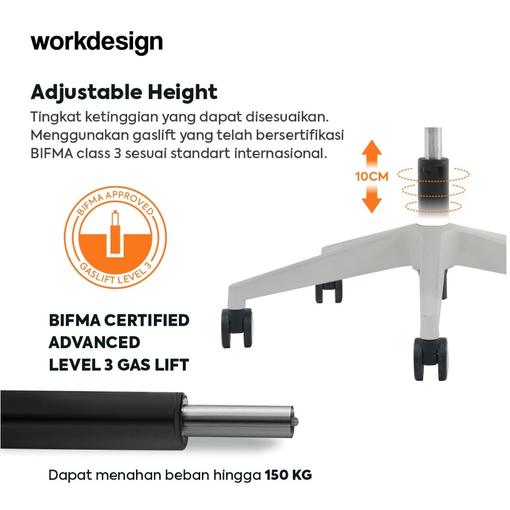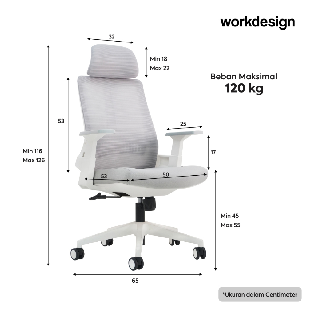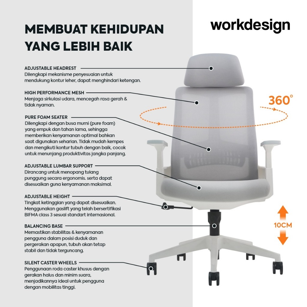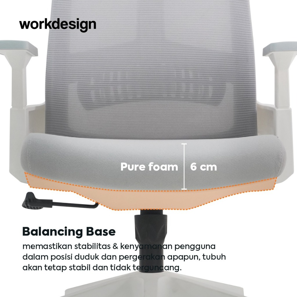 Workdesign - Ahsoka PC Kursi Kantor / Kursi Kerja Ergonomis dengan Sandaran Kepala dan Lumbar Support