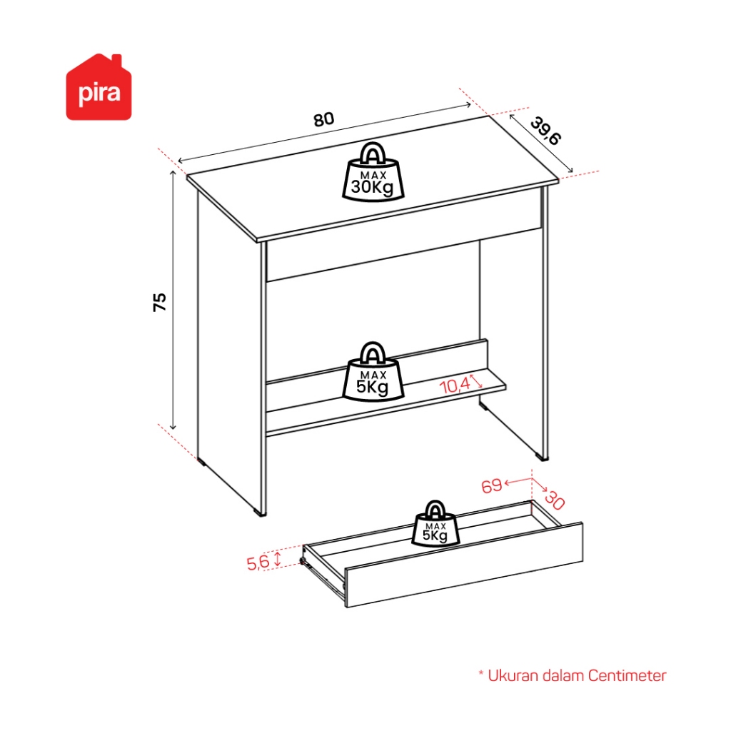 PIRA METROPOLIS OX - ARUNA DK80 Meja Belajar / Meja Komputer / Meja Kerja