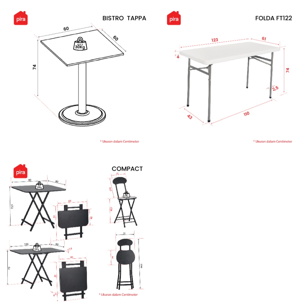 PIRA - BISTRO TT & TAPPA LEG Meja Makan / Meja Tamu / Meja Cafe / Meja Teras / Meja Kopi