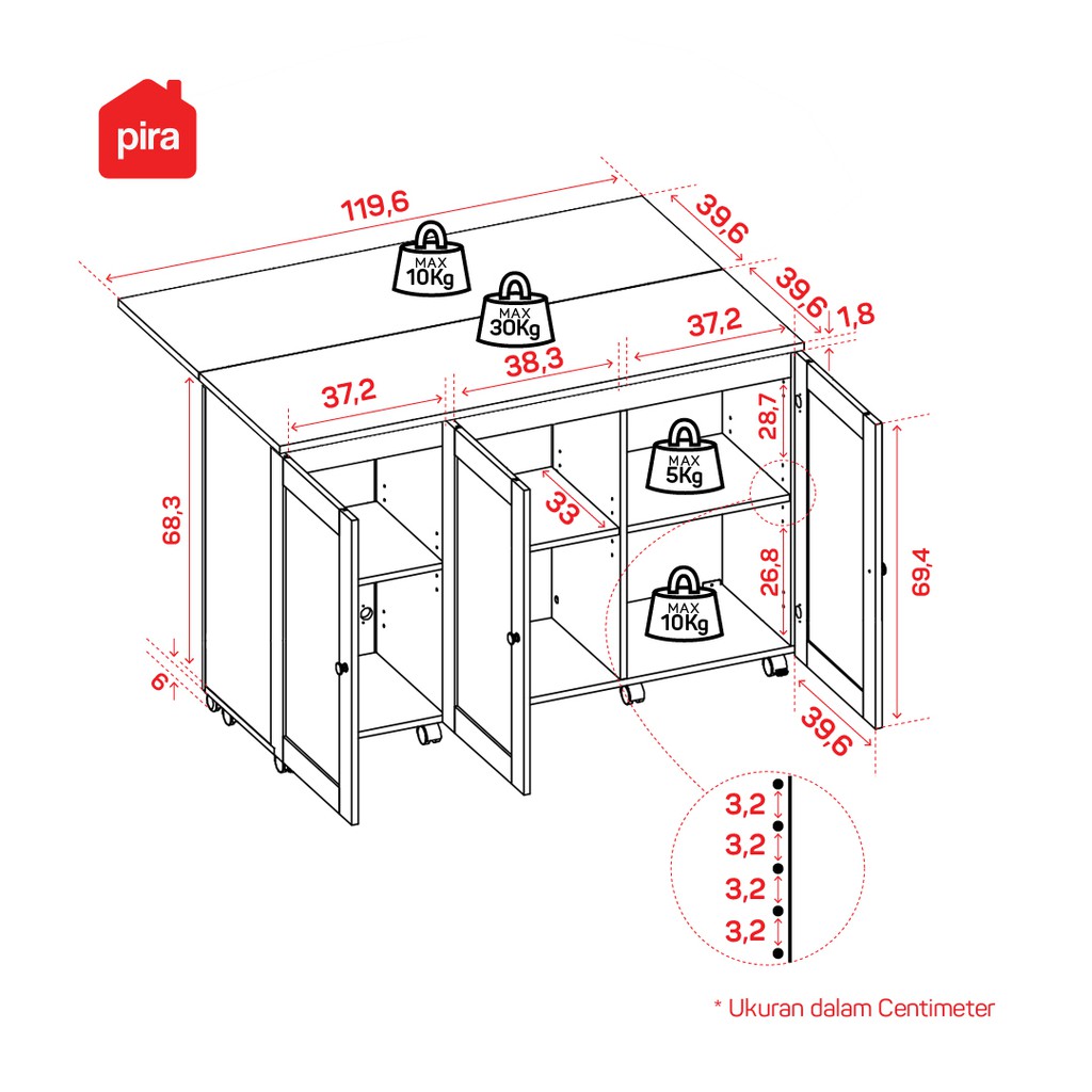 Pira - Royce DT120 Meja Makan Lipat / Bufet