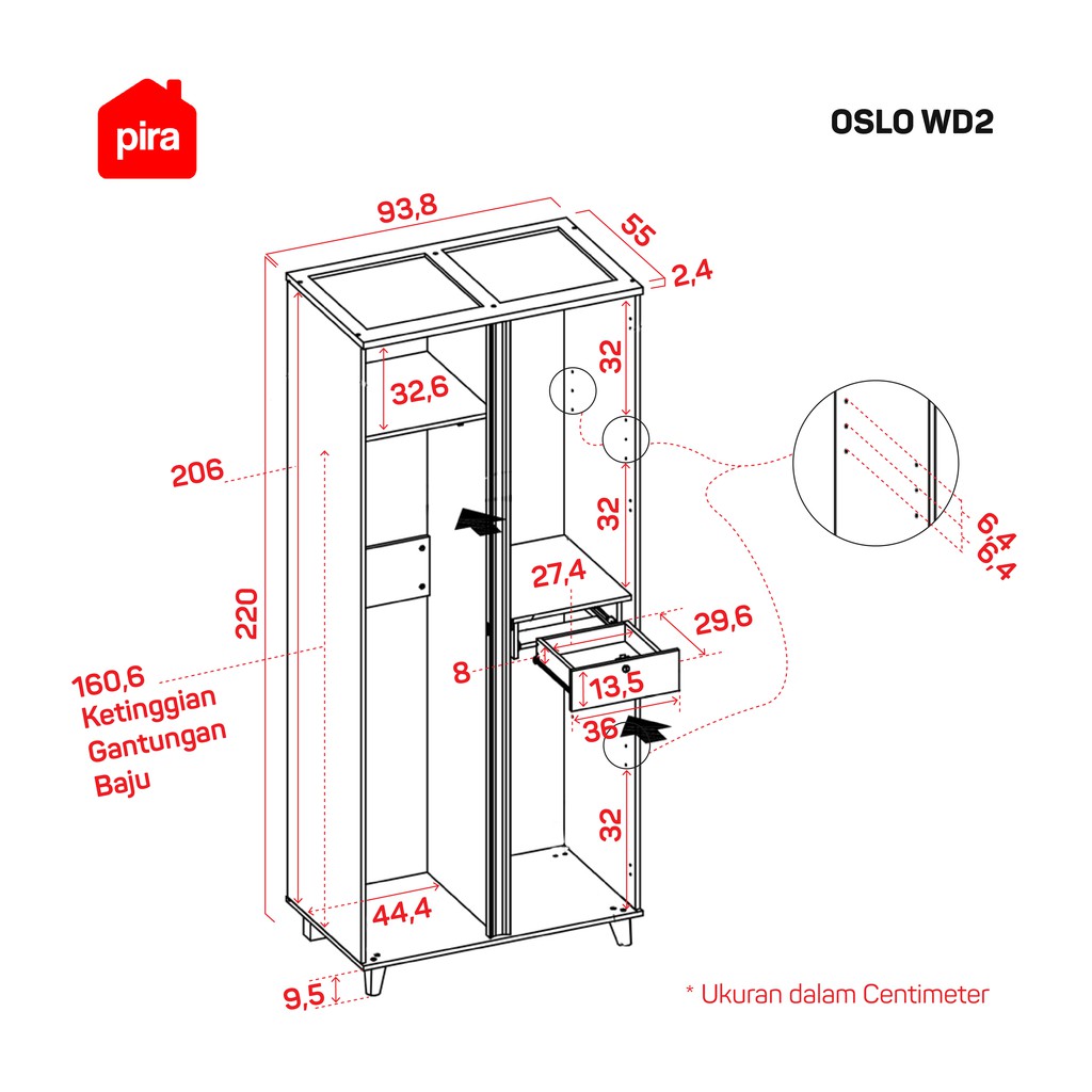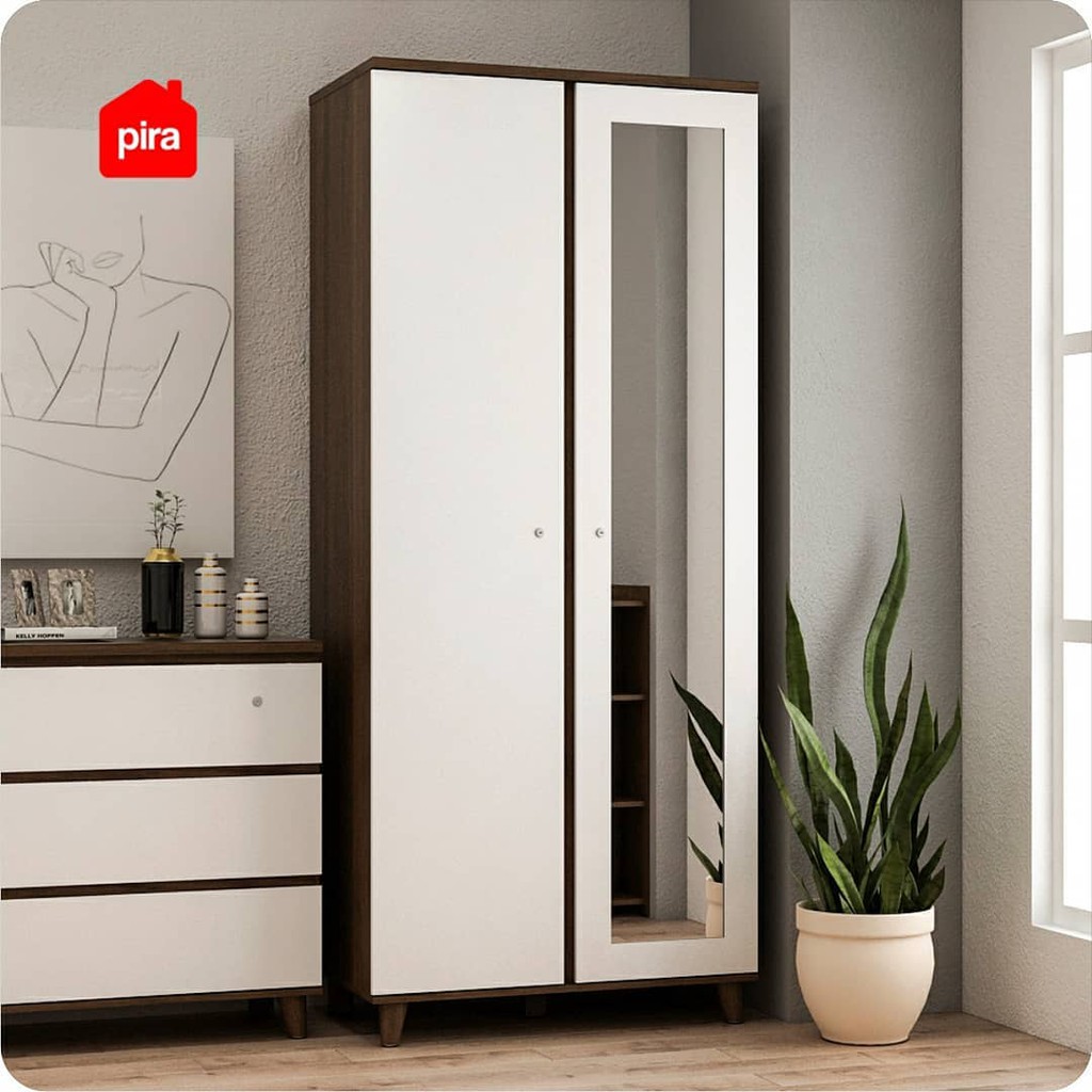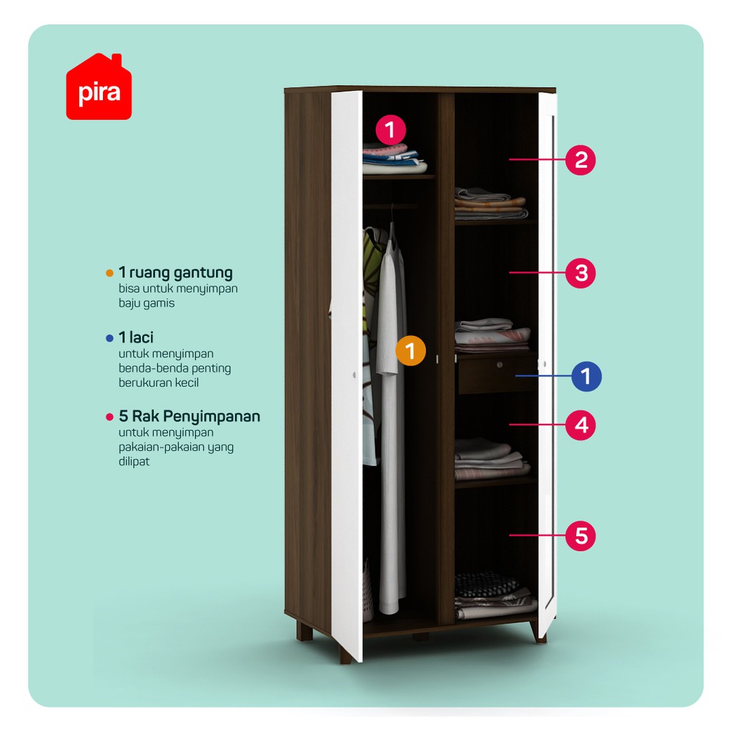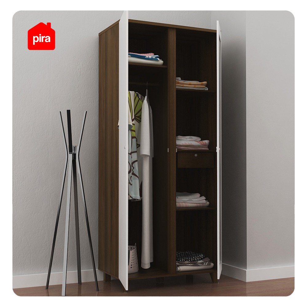 Pira - Oslo WD2 Lemari Pakaian 2 Pintu Kayu gelap - Putih Brown Walnut - White