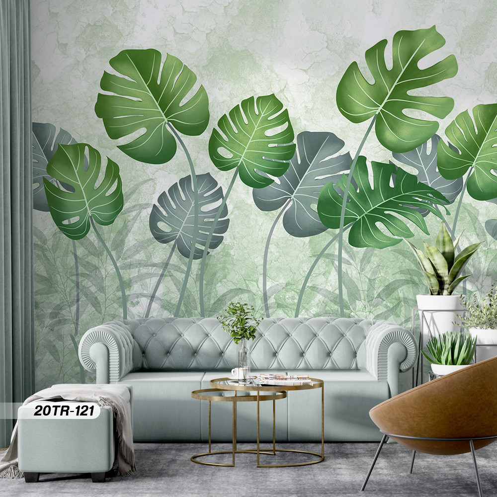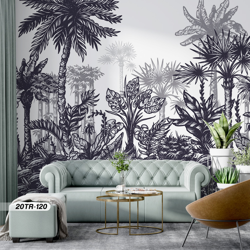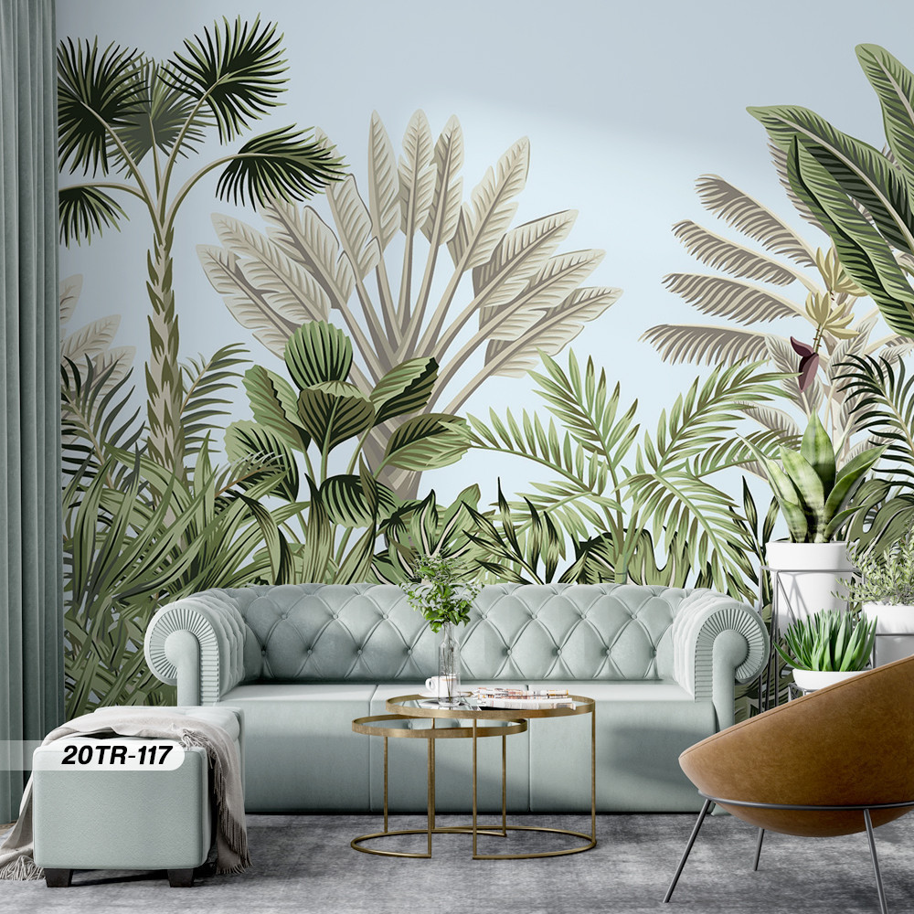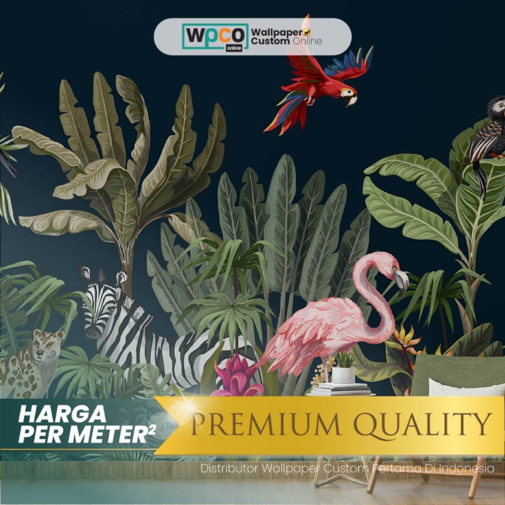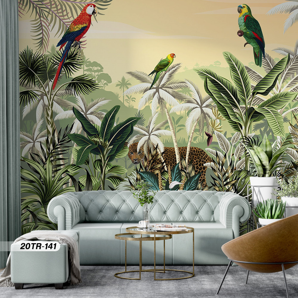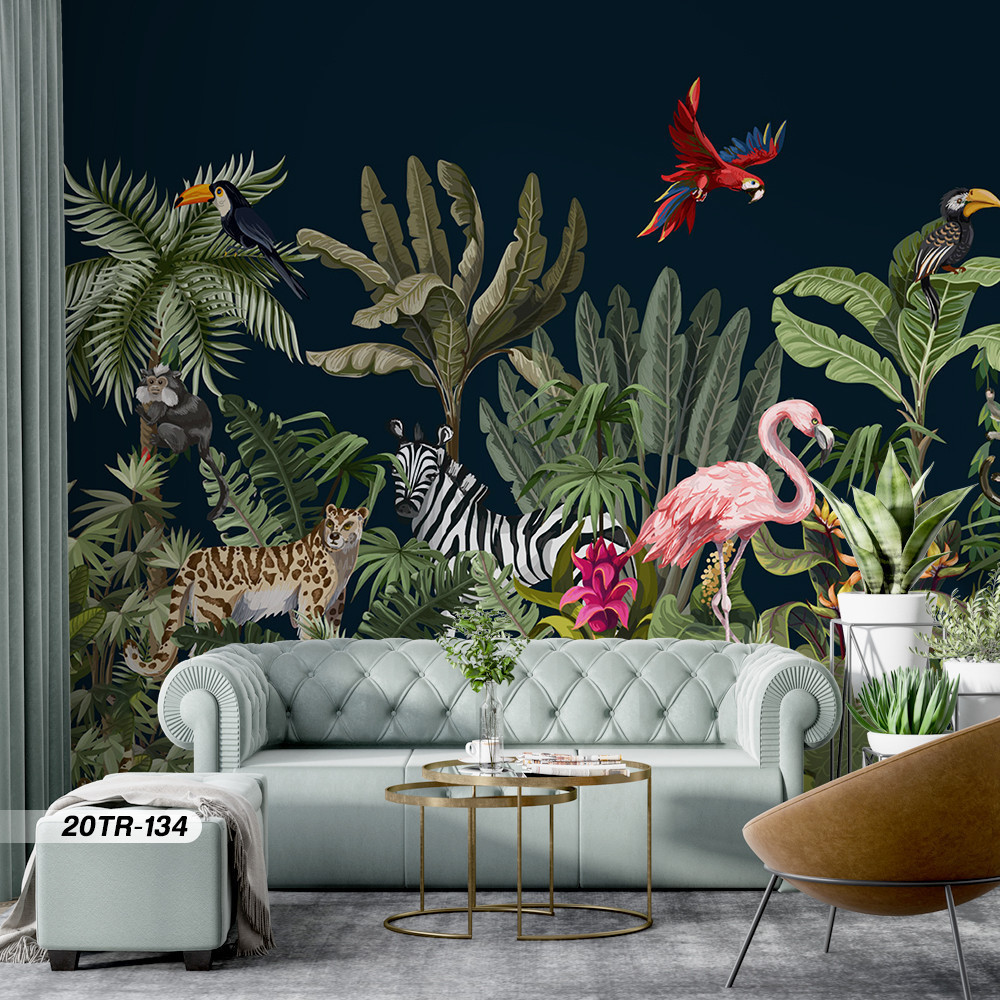 Wallpaper Custom Ruang Tamu Gambar Hutan dan Hewan Motif Tropical Premium Quality
