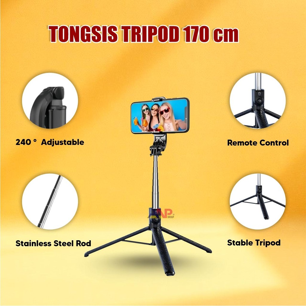 ANP88 - Tongsis Tripod Bluetooth 1.7 Meter / Tripod HP 170cm Kokoh Tahan Angin + Remote / Tripod 170cm Bluetooth /Tripode 170cm Remote / Tripod Z165