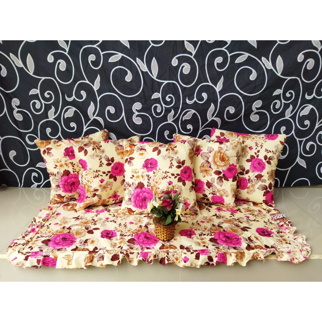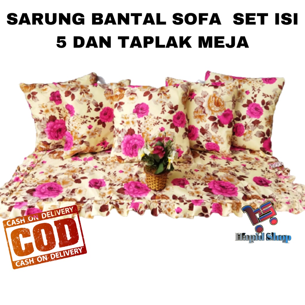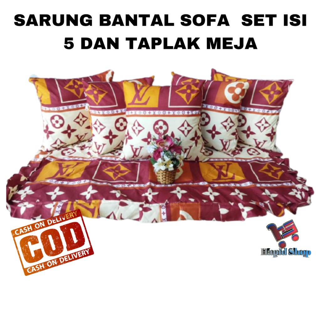 COD PAKET HEMAT Set Sarung Bantal Sofa 40x40 (Isi 5pcs) + 1 Taplak meja tamu promo murah shopee