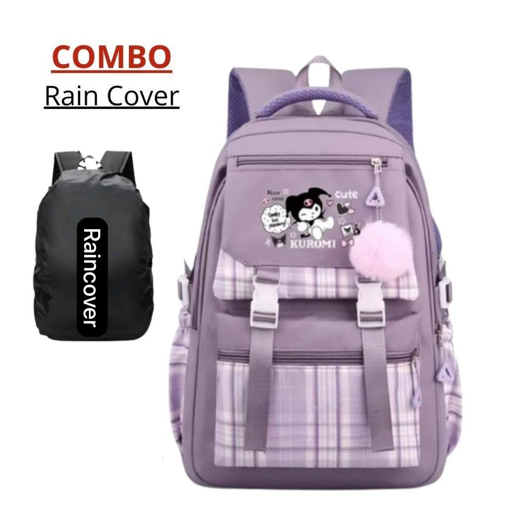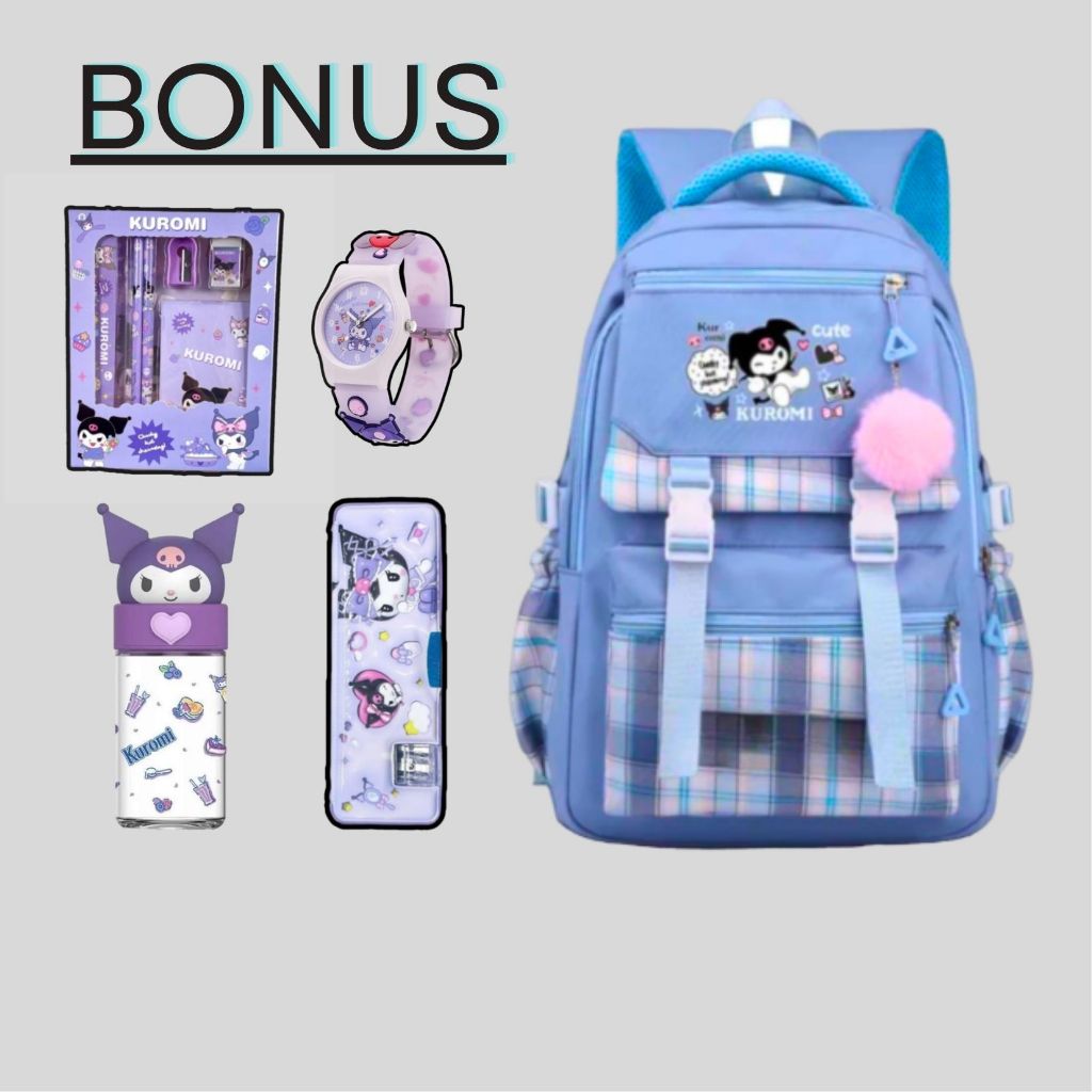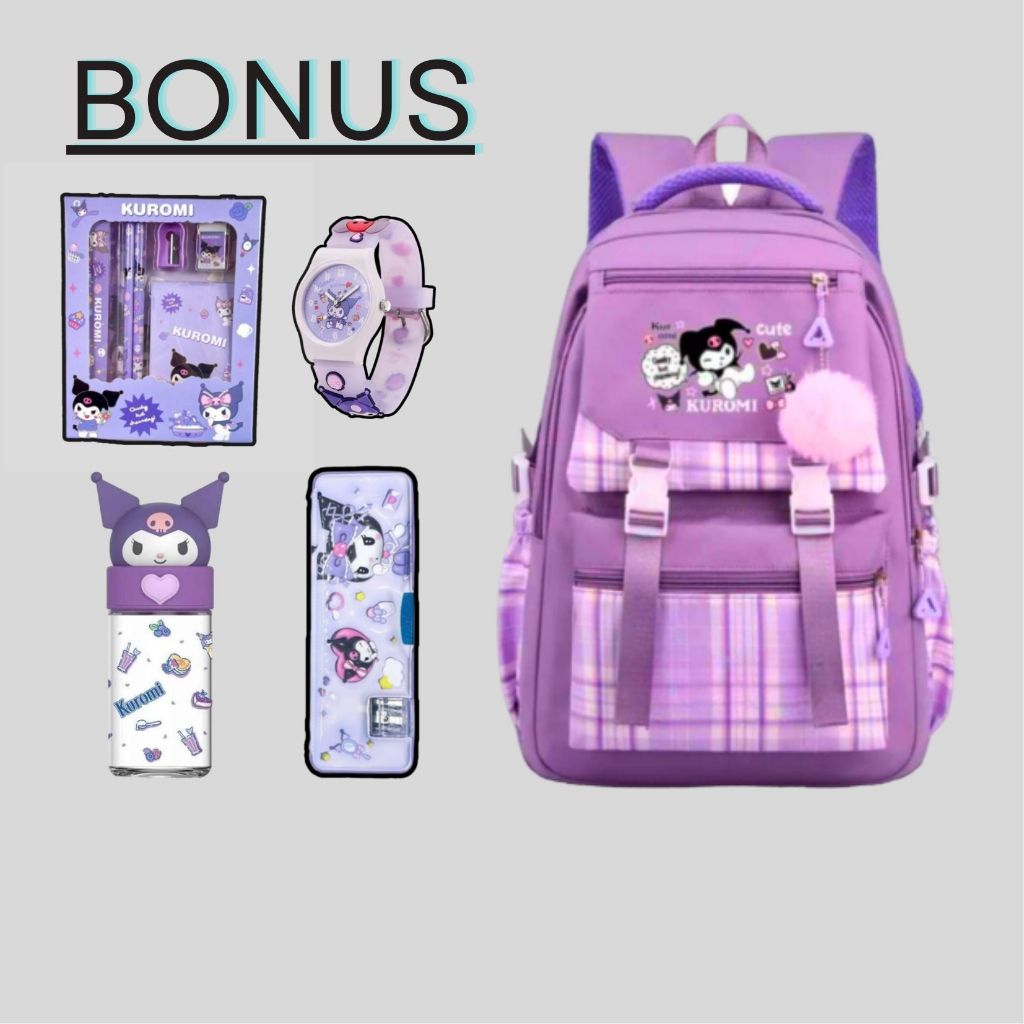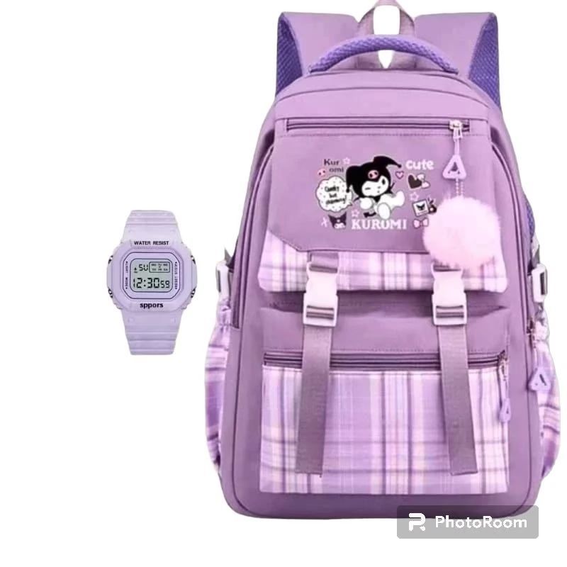 Tas Ransel Anak Perempuan Kuromi Bags Tas Sekolah Anak Free Botol Minum Nano Spray Jam Tangan Gantungan Lucu BISA COD
