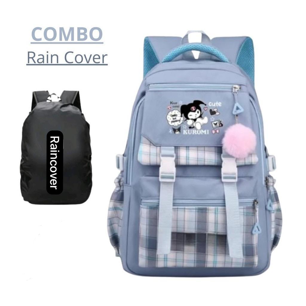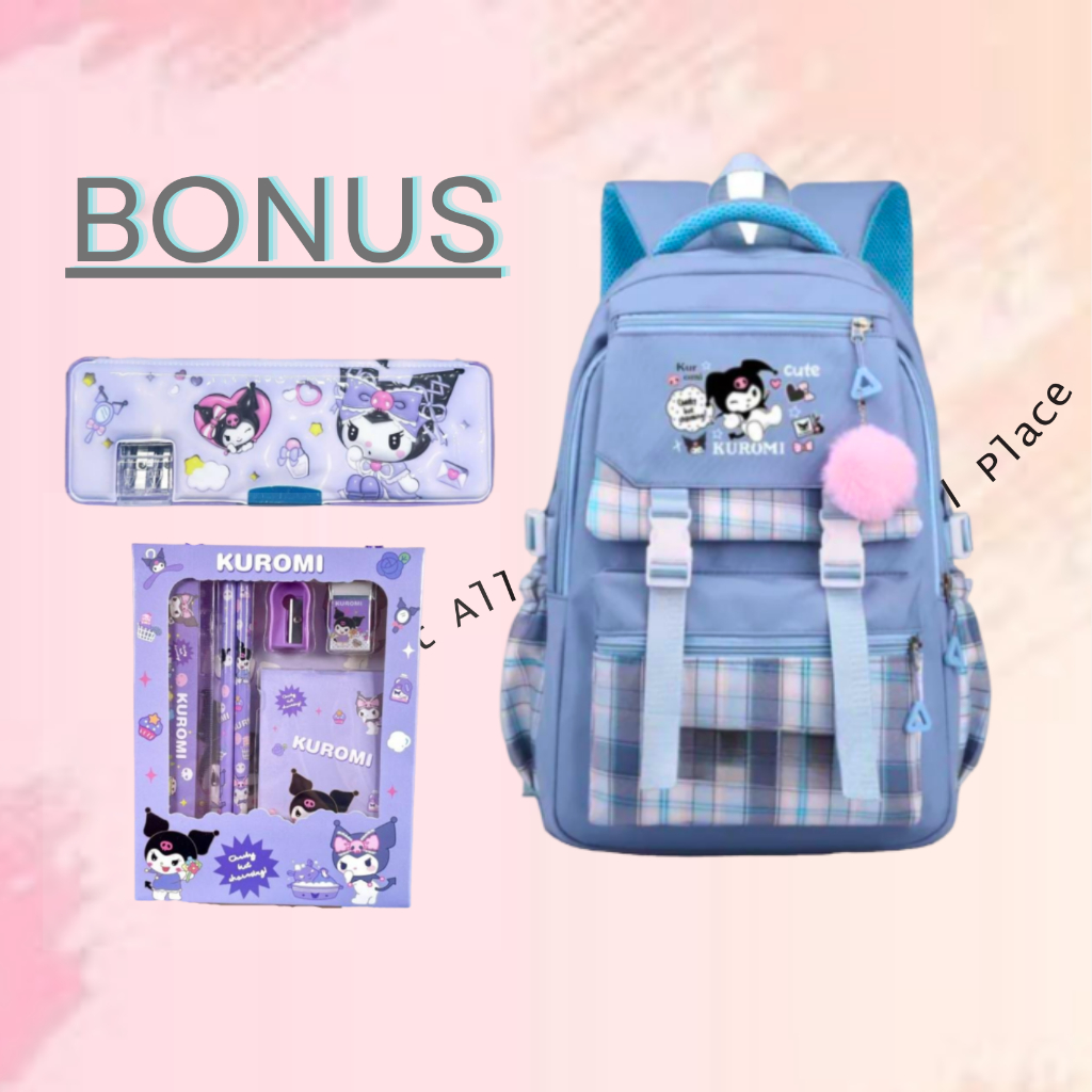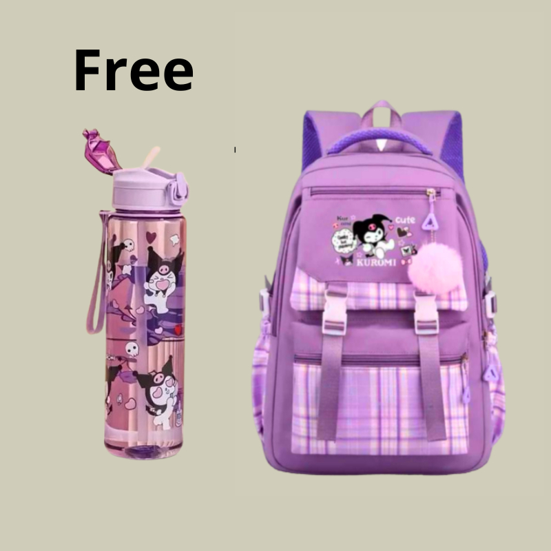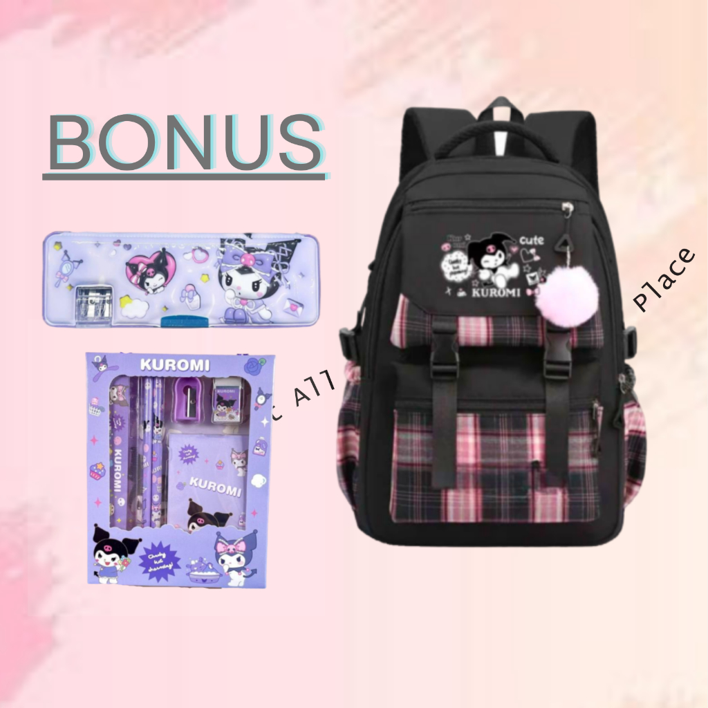 Tas Ransel Anak Perempuan Kuromi Bags Tas Sekolah Anak Free Botol Minum Nano Spray Jam Tangan Gantungan Lucu BISA COD