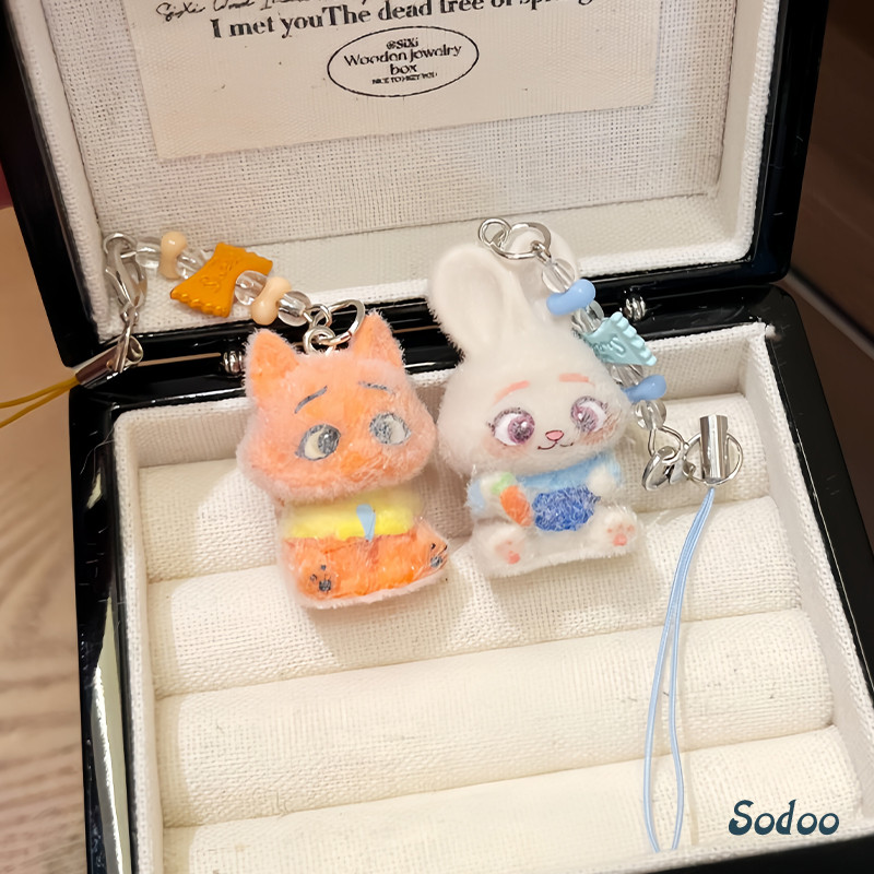 [COD] Flocking Kelinci Rubah Rantai Ponsel Lucu Kartun Hewan Manik-manik Liontin Tas Pasangan Aksesoris -SO