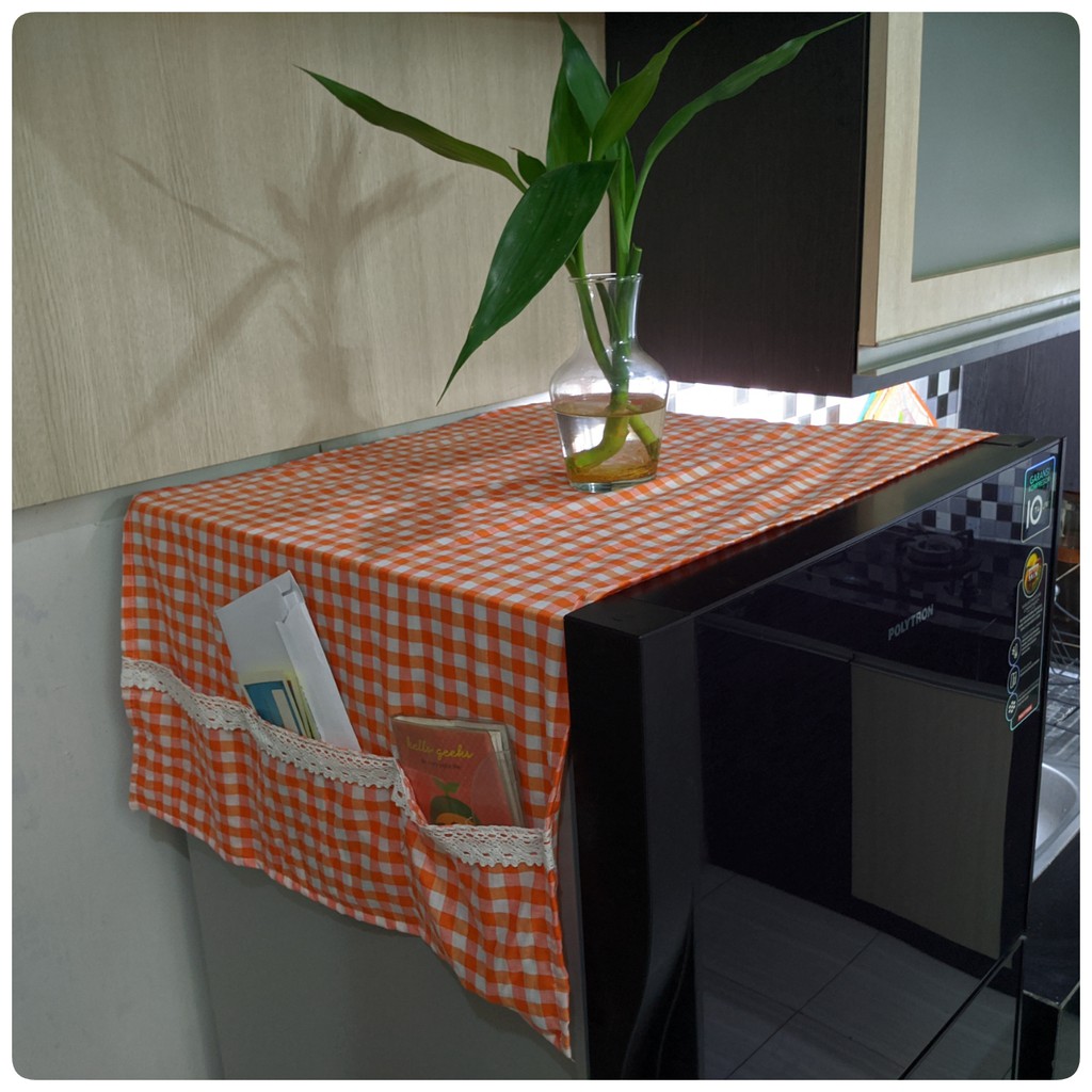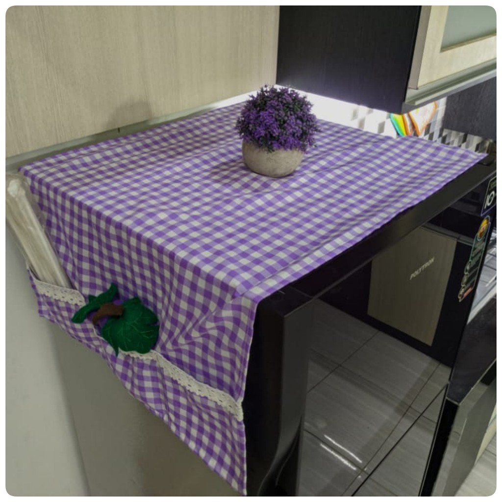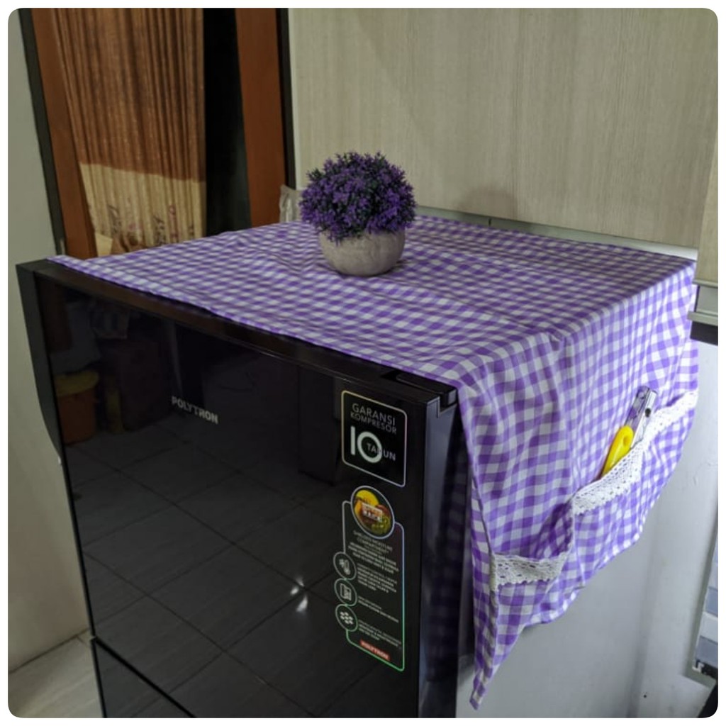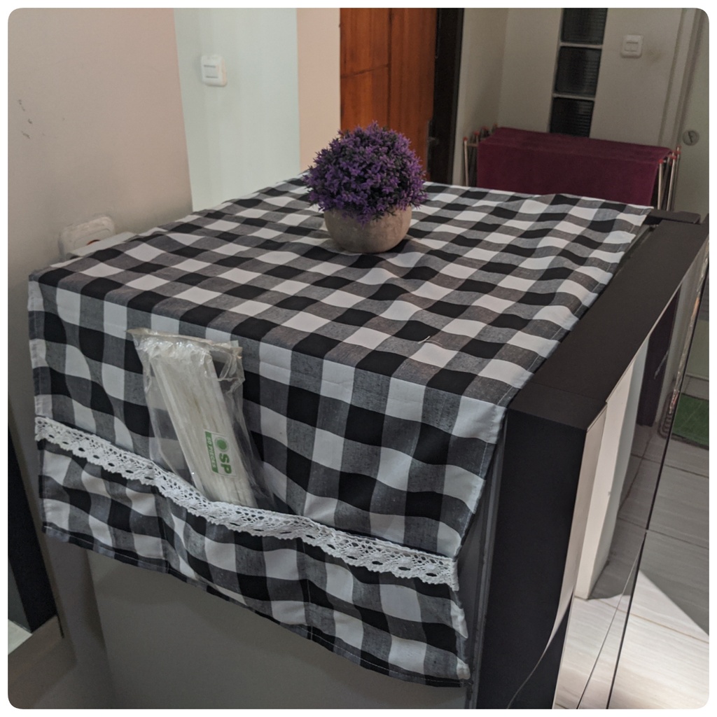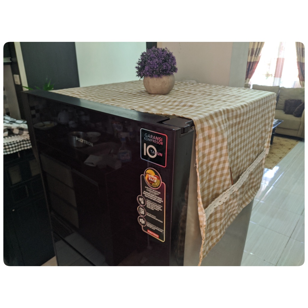 Cover Kulkas / TAPLAK KULKAS 6 Saku Estetik Motif Kotak-Kotak Hiasan RENDA Rajut Kekinian Gaya Korea