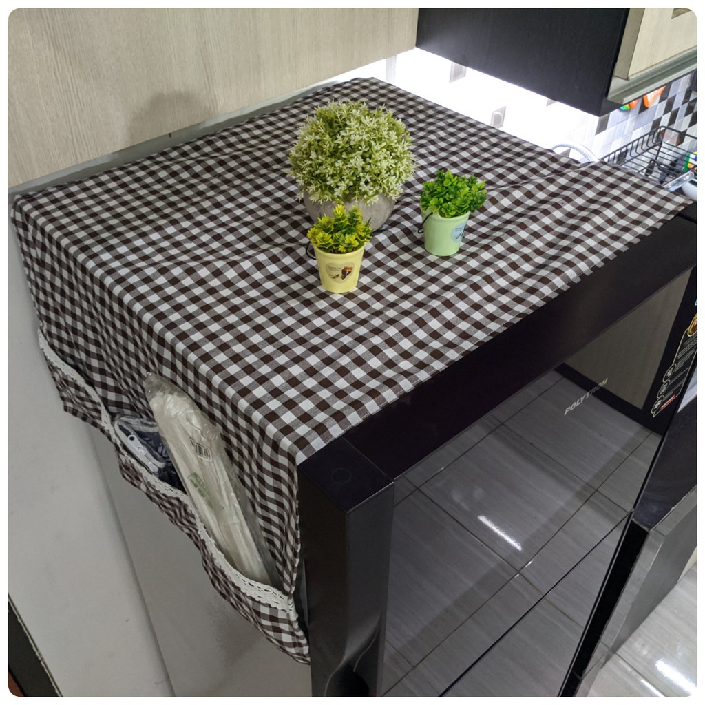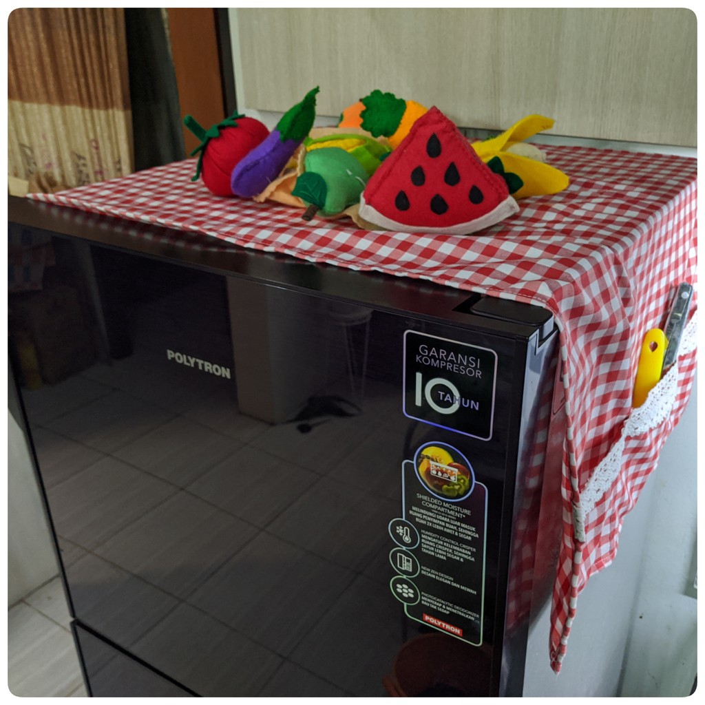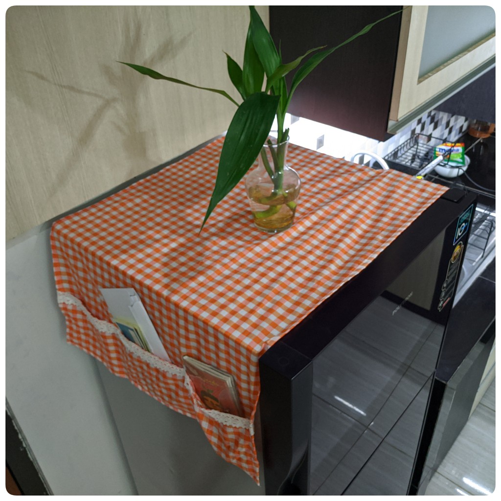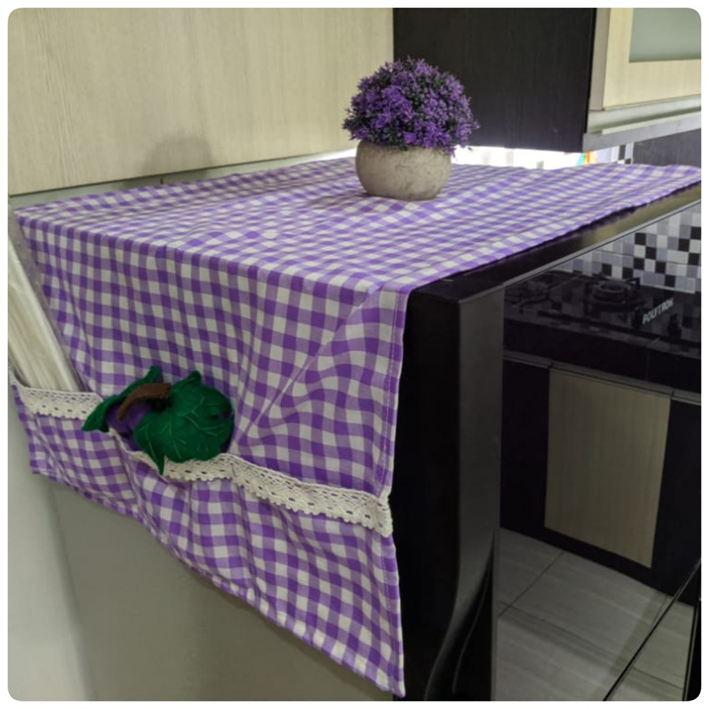 Cover Kulkas / TAPLAK KULKAS 6 Saku Estetik Motif Kotak-Kotak Hiasan RENDA Rajut Kekinian Gaya Korea