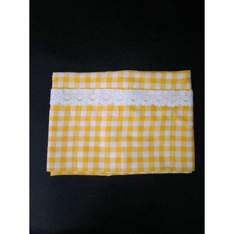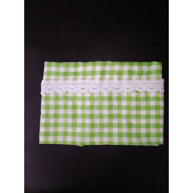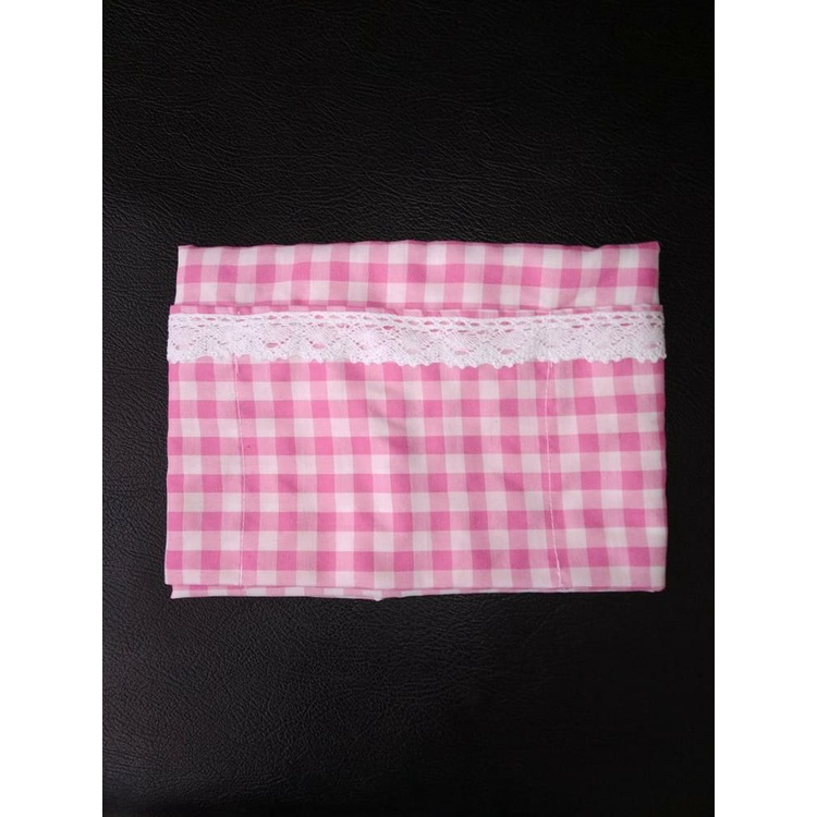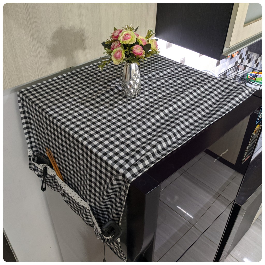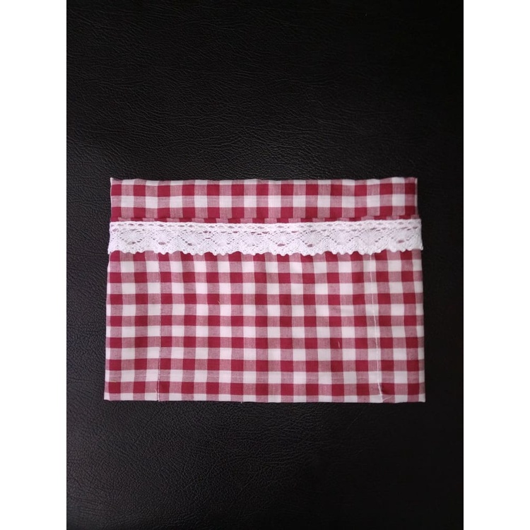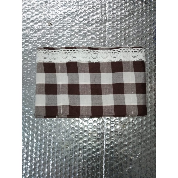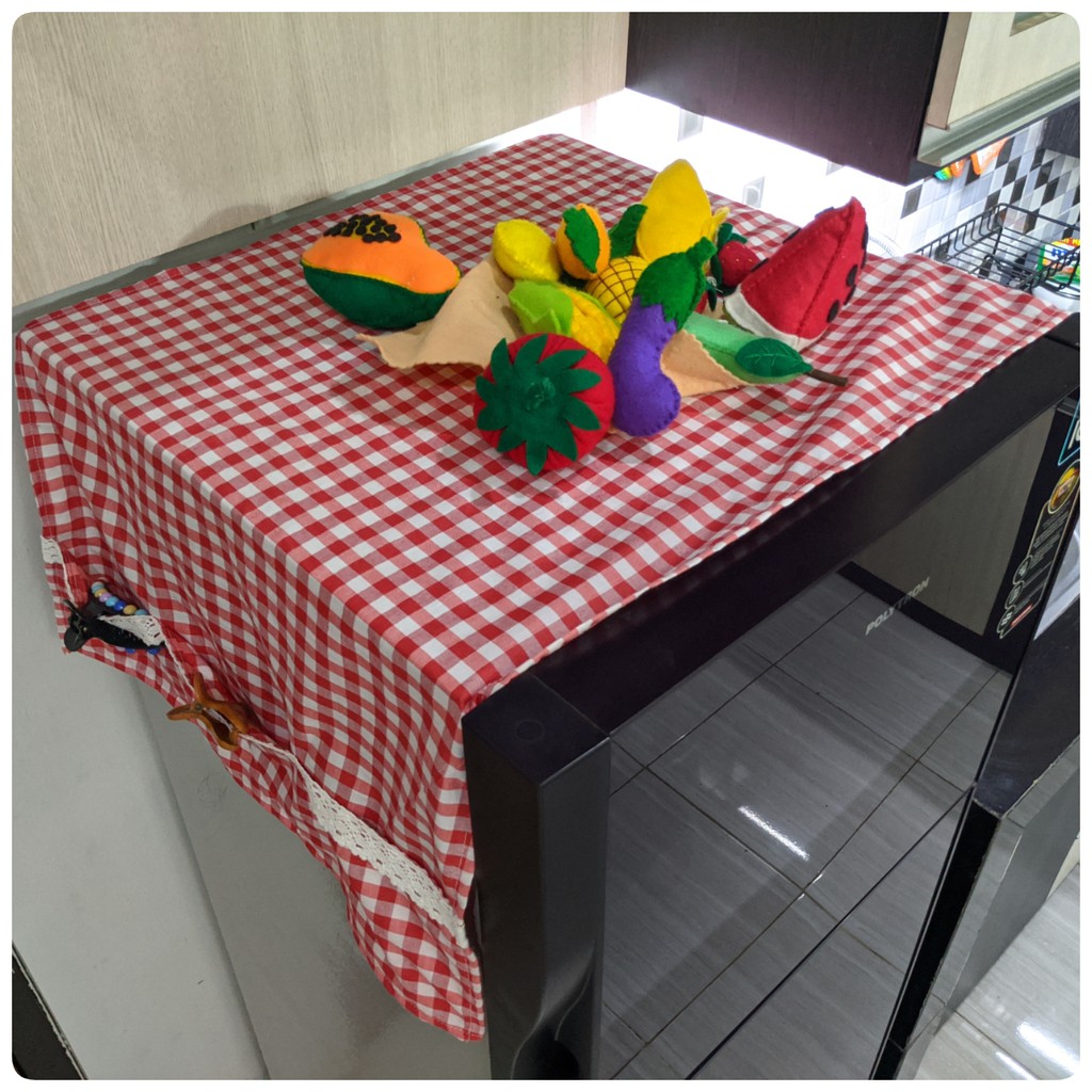 Cover Kulkas / TAPLAK KULKAS 6 Saku Estetik Motif Kotak-Kotak Hiasan RENDA Rajut Kekinian Gaya Korea