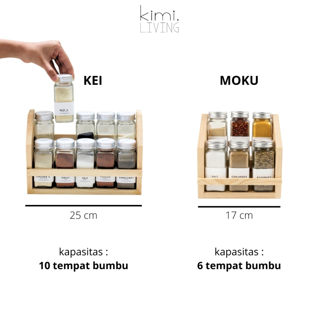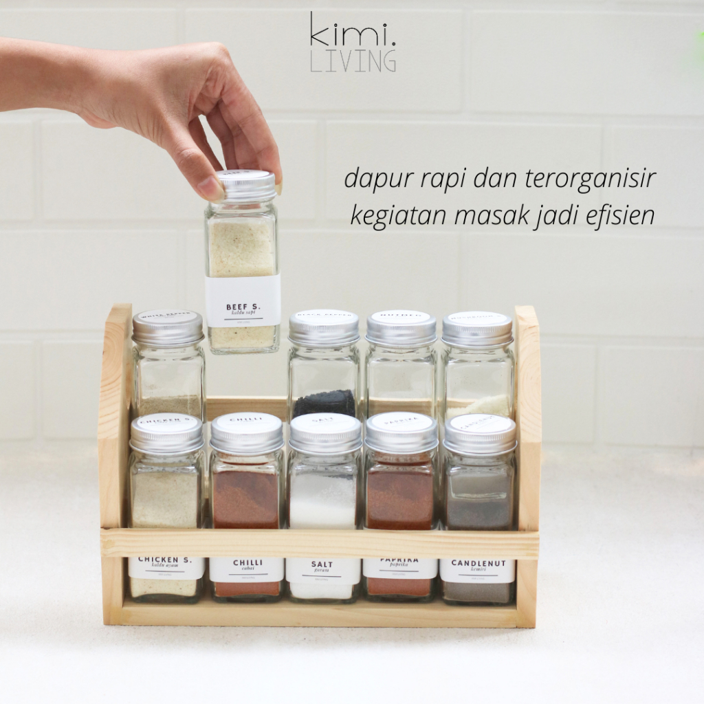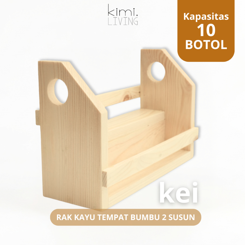 KIMI LIVING - KEI Rak Bumbu Kayu Estetik 2 tingkat dengan handle pegangan tangan / Aesthetic Wooden Spice Rack - tempat susun wadah bumbu dapur