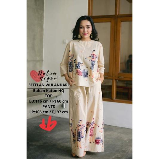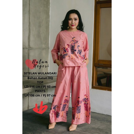 Setelan Batik Blus Lengan Panjang Celana Model Kulot Motif Simbok Jamu Andriana Daily Outfit Baju Resmi Kantor OOTD