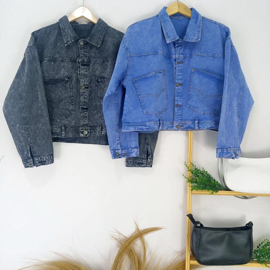 JAKET JEANS CROP LD 120 130 140 JUMBO BIG SIZE OVERSIZE (COD)