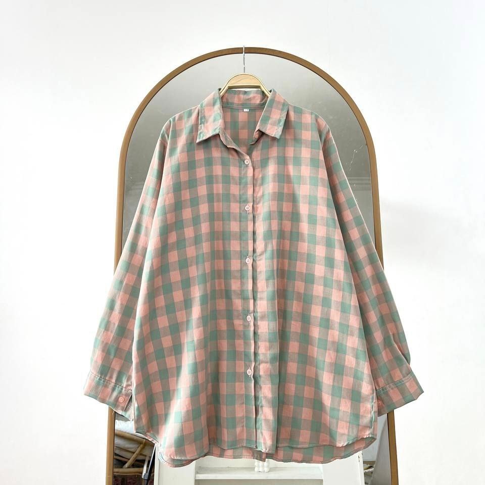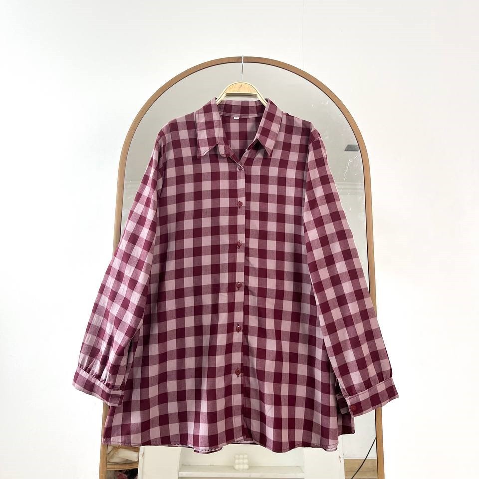 AKAVI - GHINGGAM KEMEJA COTTON OXFORD SUPER JUMBO FLANEL BIGSIZE ATASAN OVERSIZE LD 120 130 140 150 (231gr)
