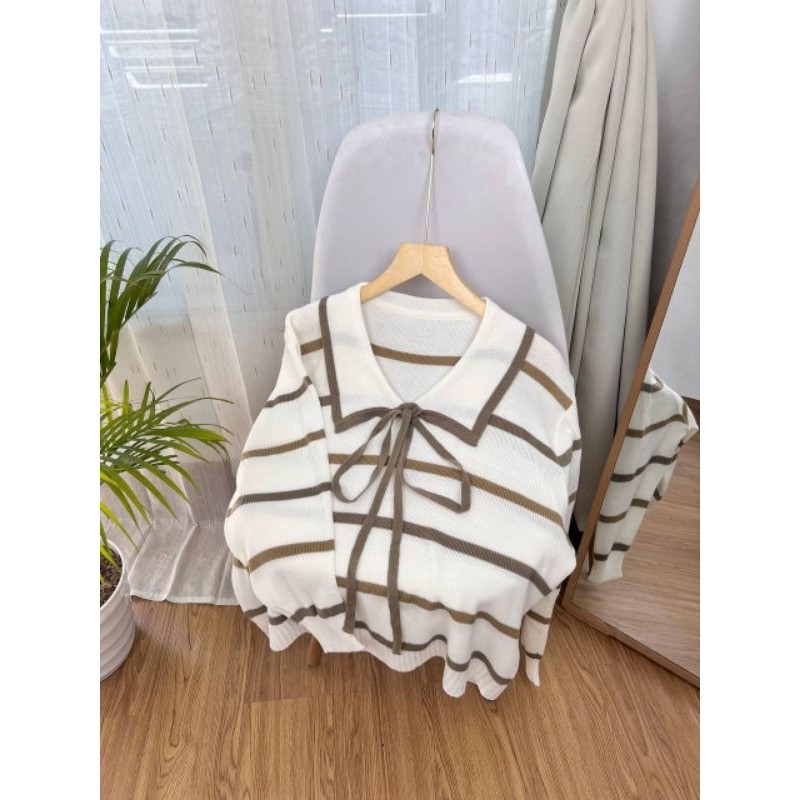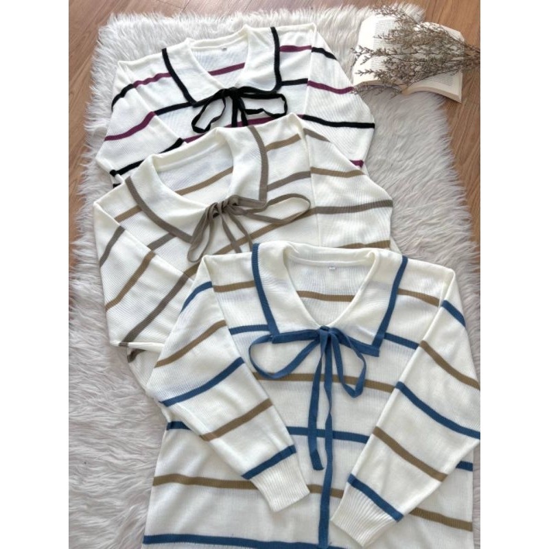 AKAVI - TYVA SWEATER SUPER JUMBO RAJUT BIGSIZE ATASAN OVERSIZE SALUR SAILOR LD 120 130 140 150 COD (333gr)