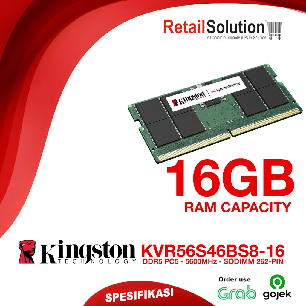 RAM Laptop Mini PC - Kingston 1x 16GB 16 GB DDR5 5600MHz SODIMM - KVR56S46BS8-16