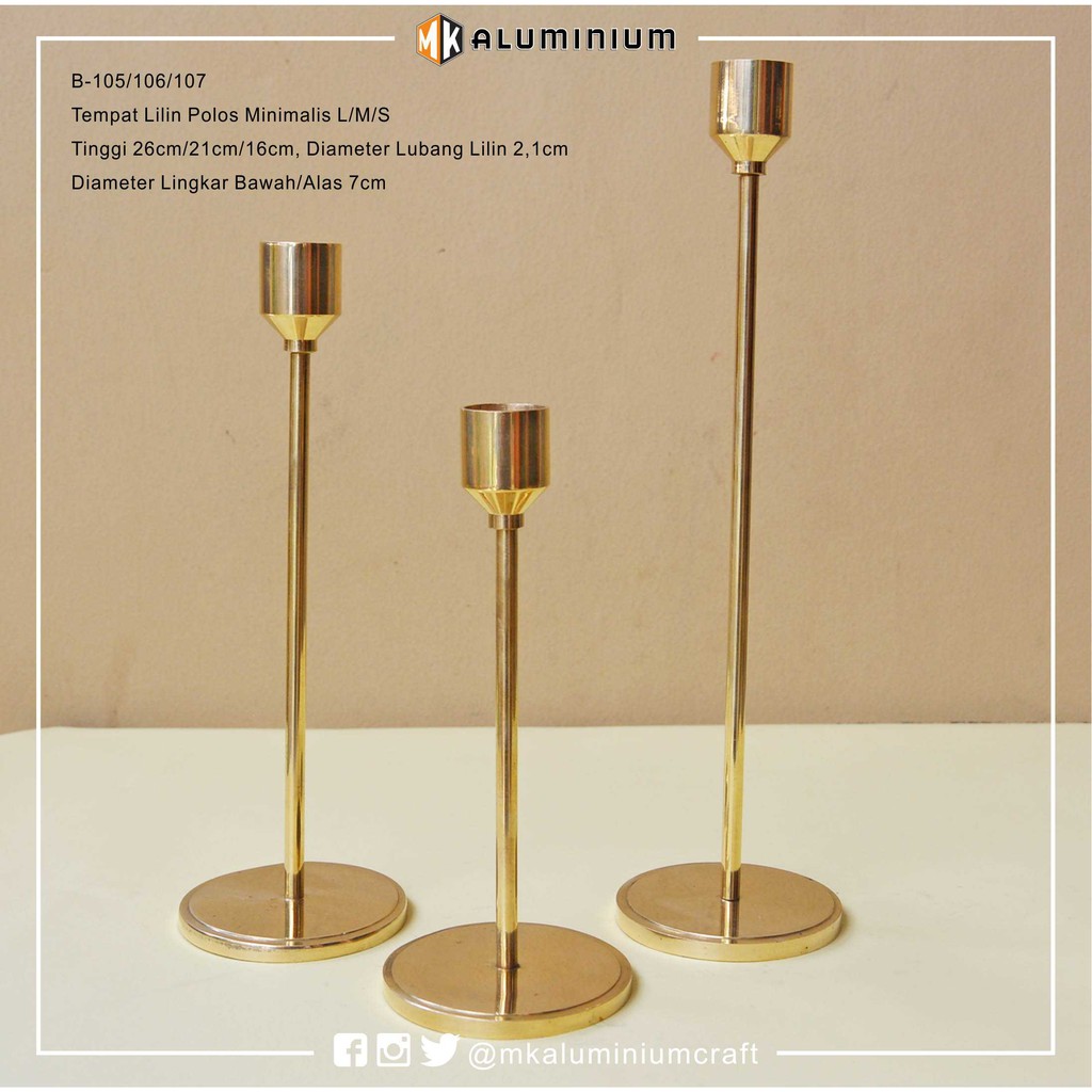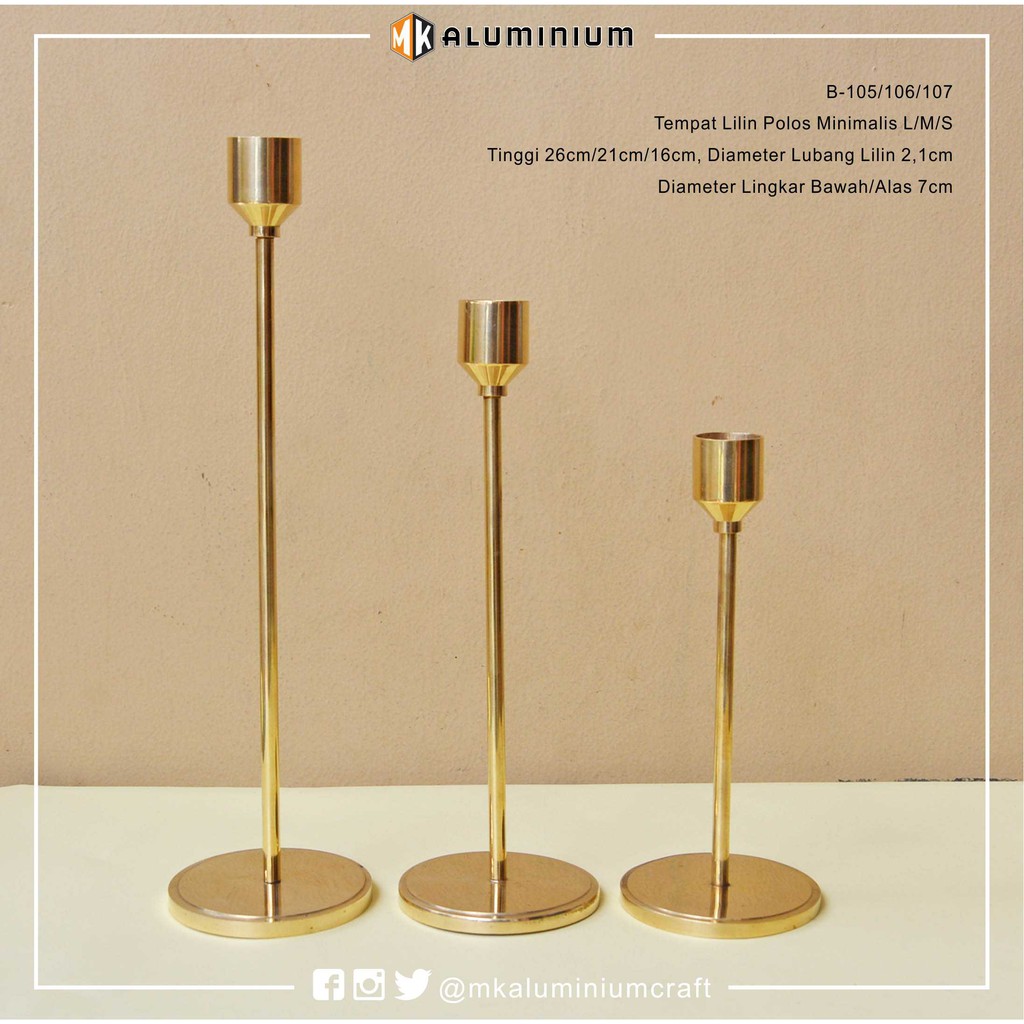 Tempat Lilin Minimalis Polos 26 21 16 cm set 3 Logam Kuningan Candle Holder MK Aluminium