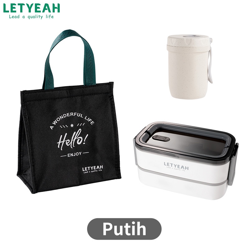 letyeah kotak makan anti tumpah/ lunch box 1600ml dan cangkir sup tahan panas /lunch box set/tempat bekal makan
