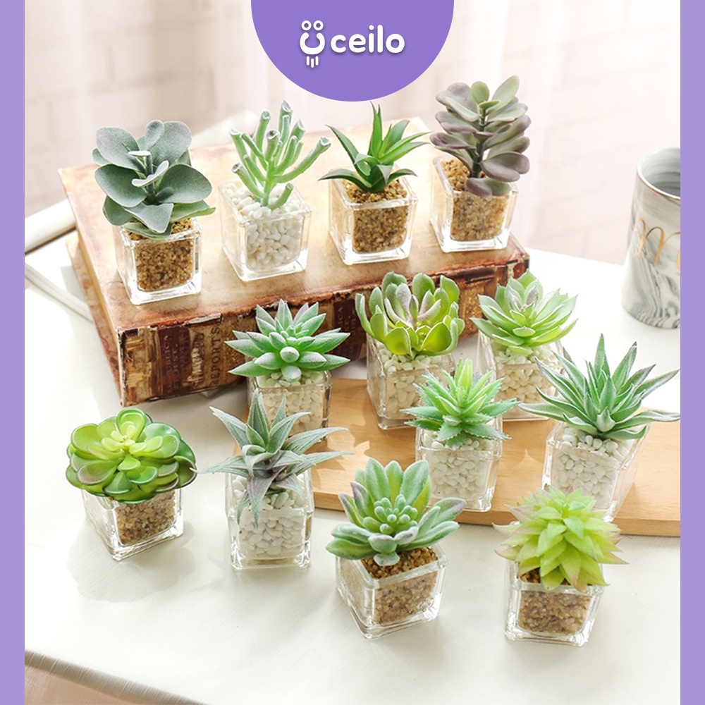 CEILO Kaktus Sukulen Imitasi | Cactus Artificial Premium | Properti Foto Mini Kaktus Sukulen | Tanaman Sintesis Prop Foto