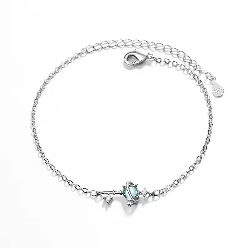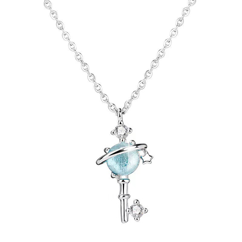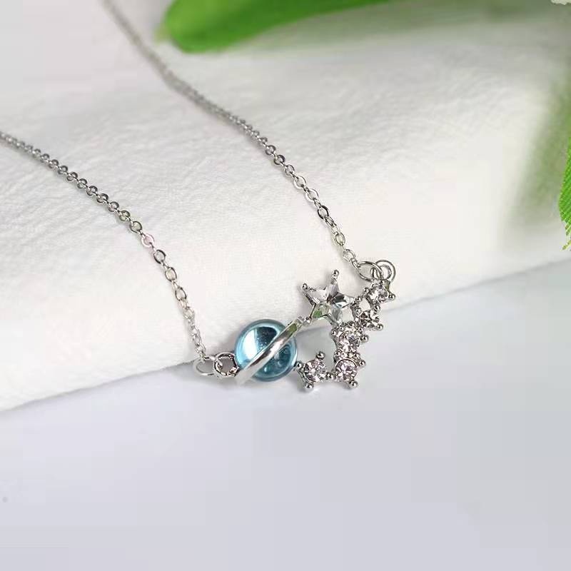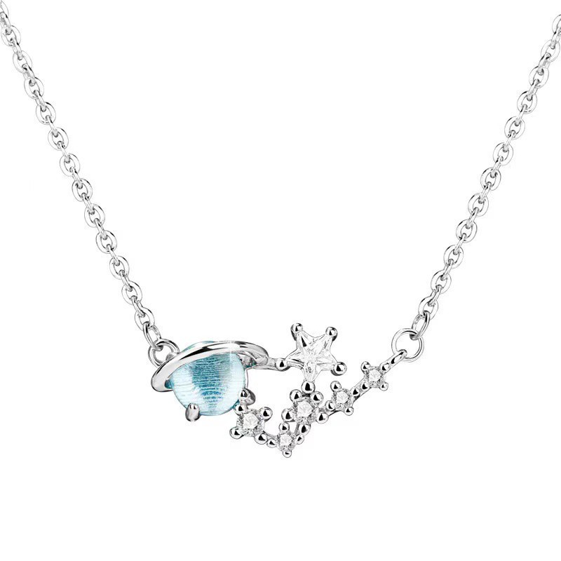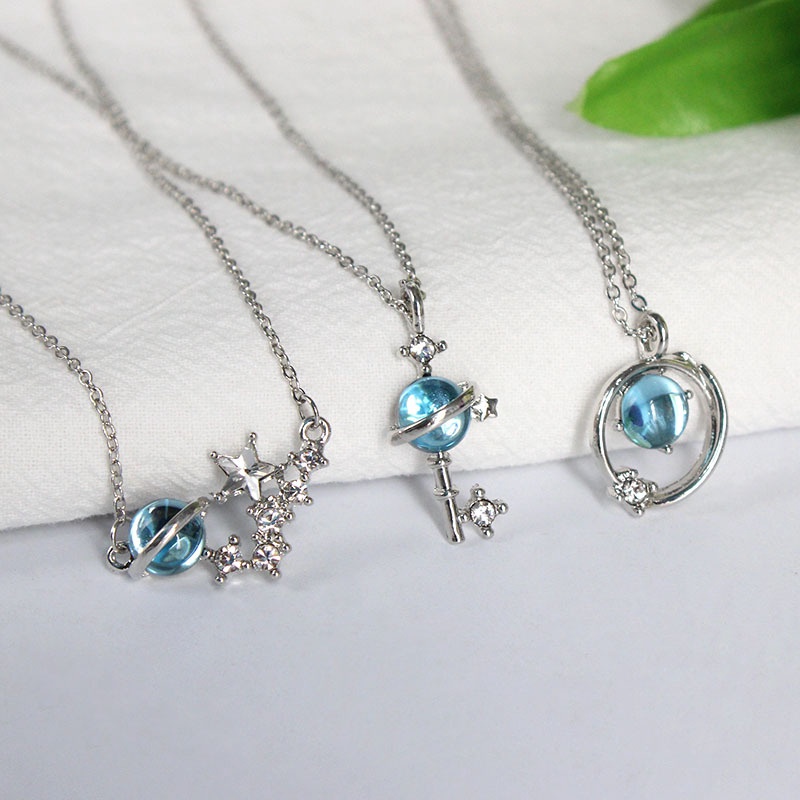 Kalung Wanita Fashion Chain x Necklace Blue Crystal Planet Sapphire Clavicle Pendant Necklace Fashion Perhiasan L09