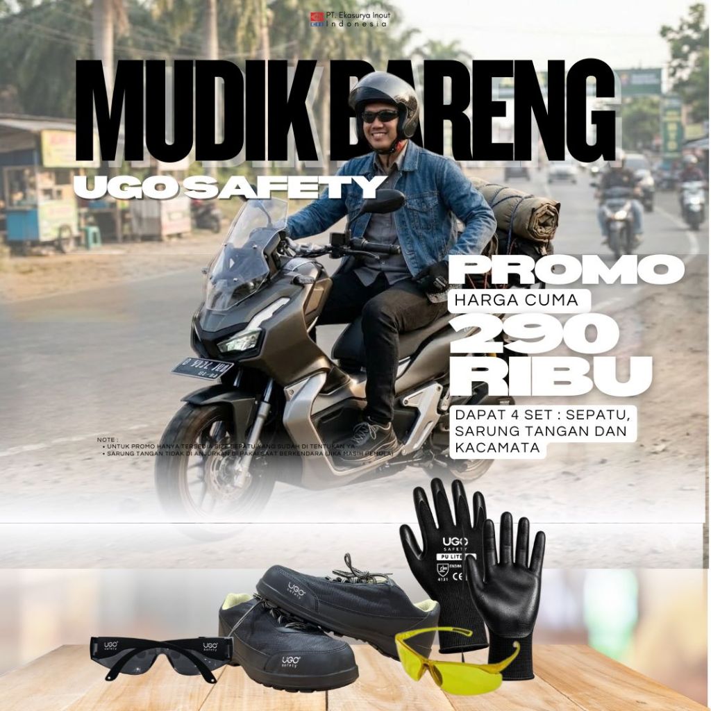 PROMO MUDIK (SET 1) | 1 SET UGO SAFETY SEPATU MP,ML,KACAMATA SMOKE, SARUNG TANGAN PU LITEFIT | MURAH