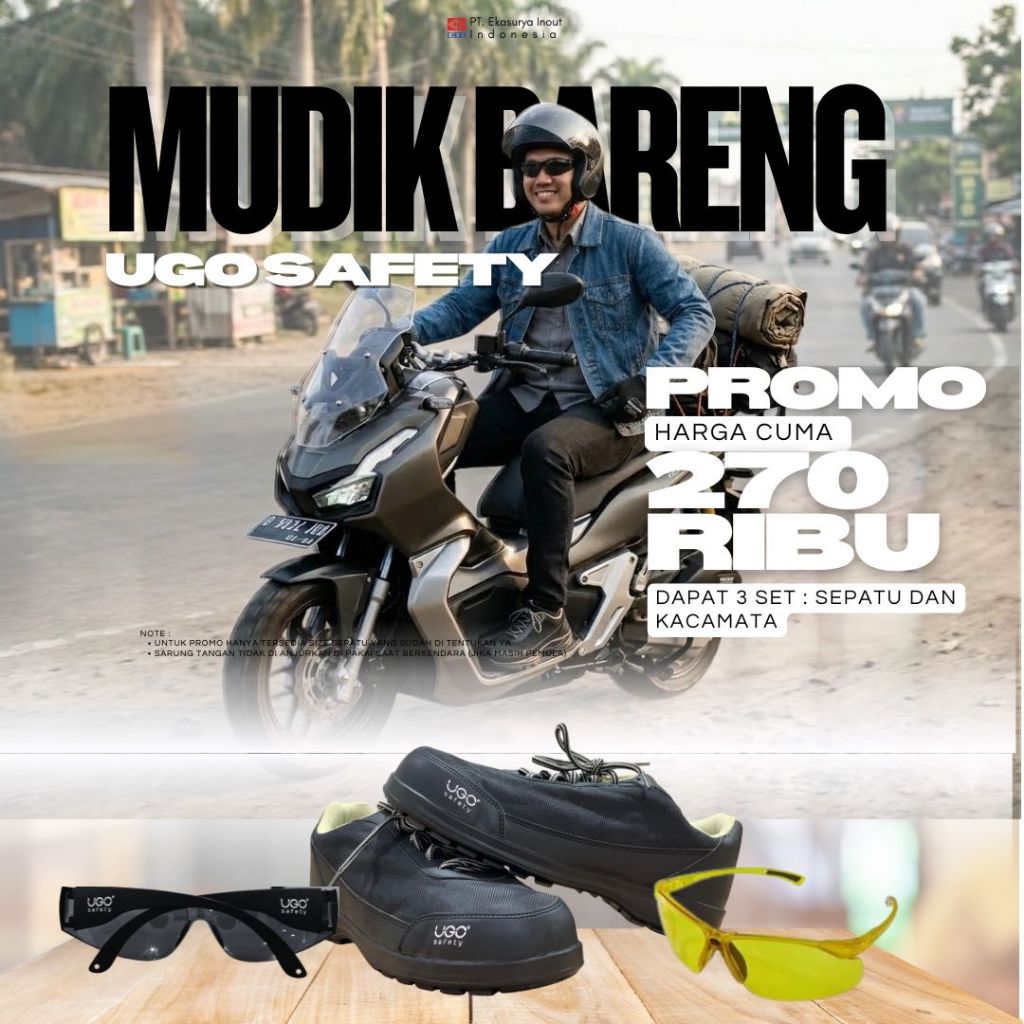PROMO MUDIK (SET 2) | 1 SET UGO SAFETY SEPATU MP,ML,KACAMATA SMOKE | MURAH