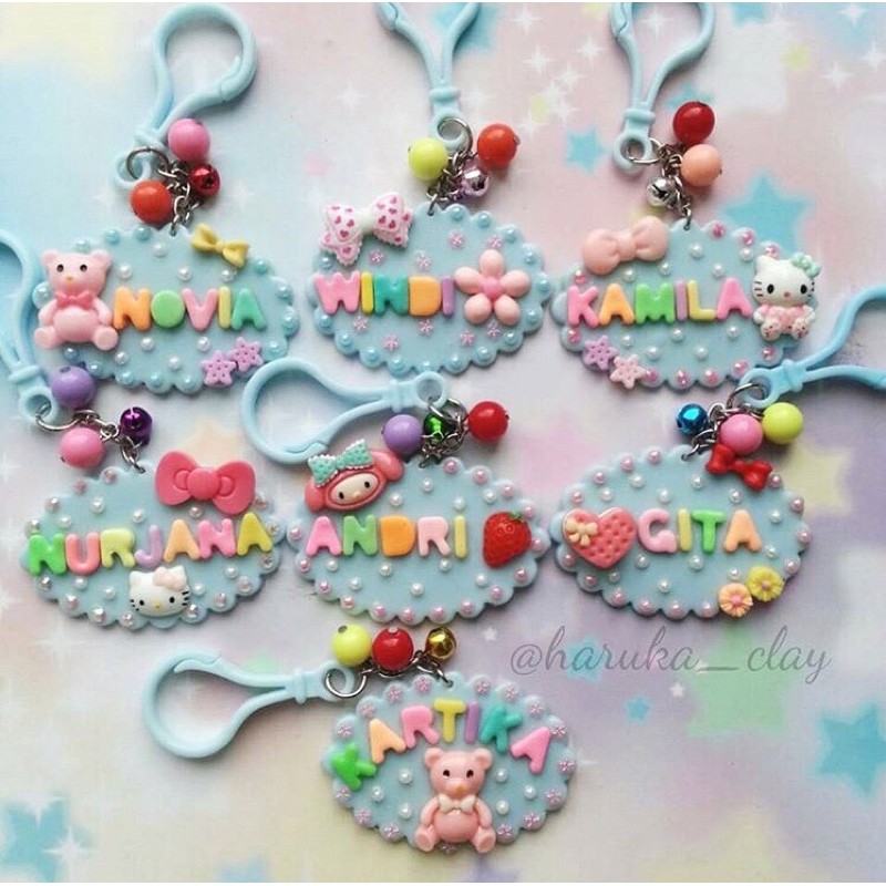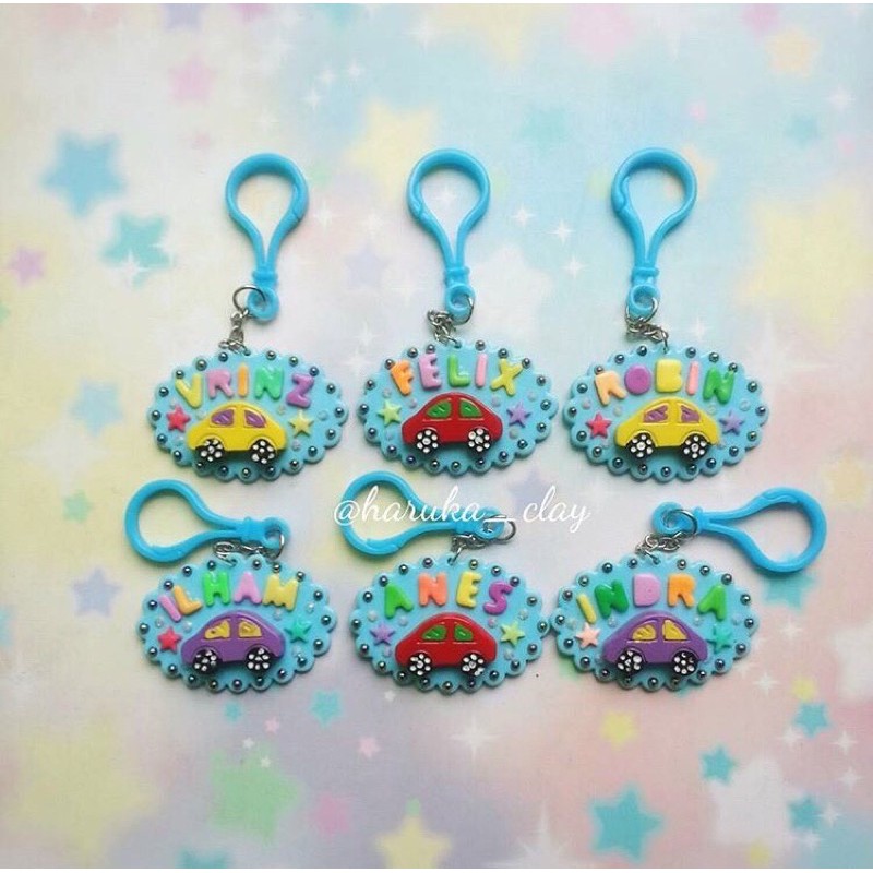 Ganci nama handmade | gantungan kunci clay nama | souvenir ultah