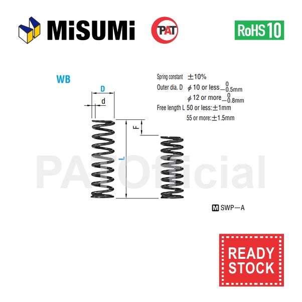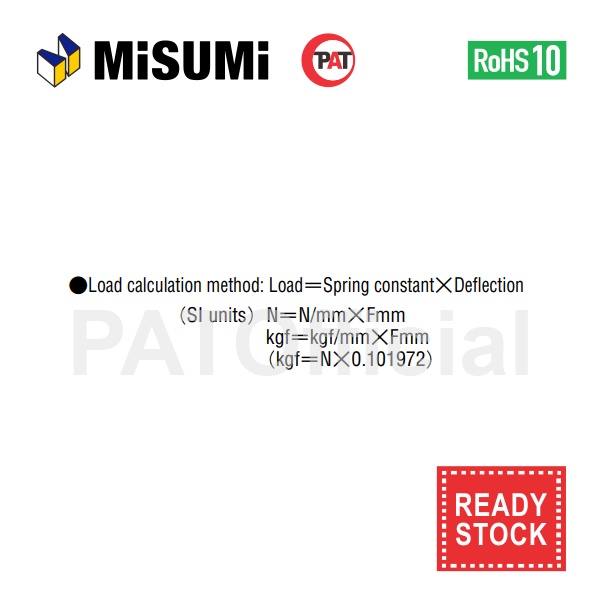 MISUMI Round Wire Coil Springs -WB(25% Deflection) WB12-80
