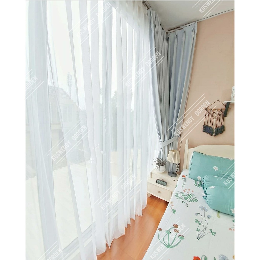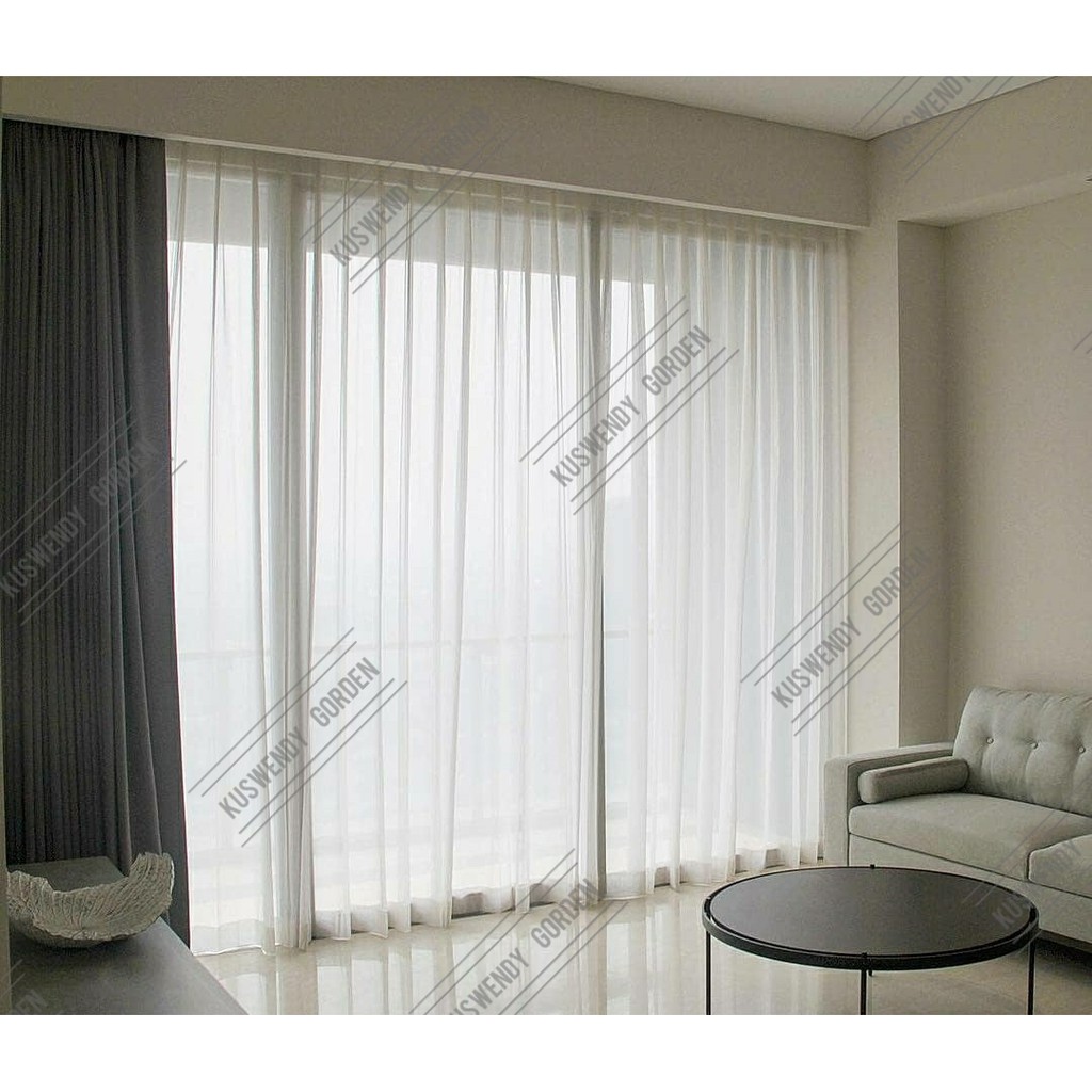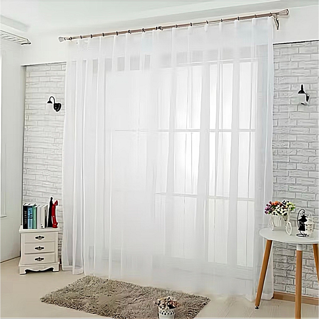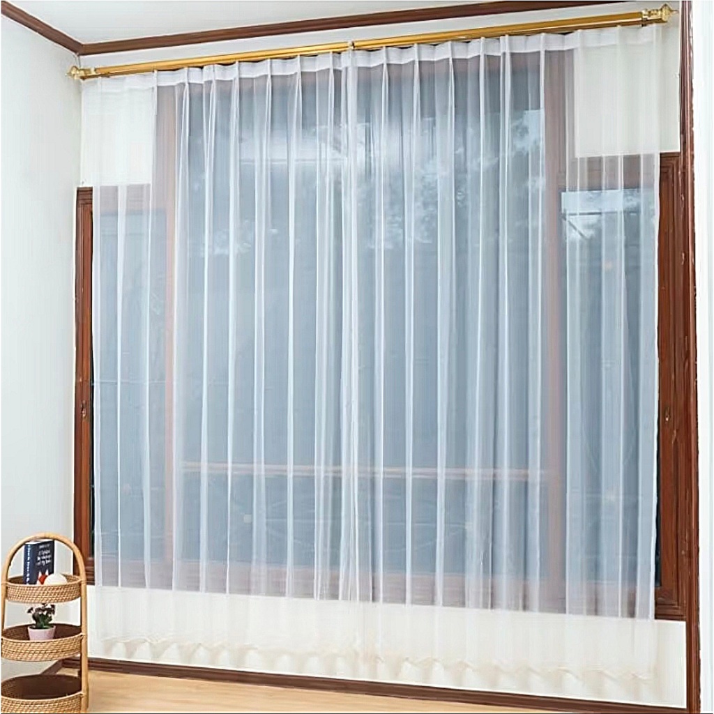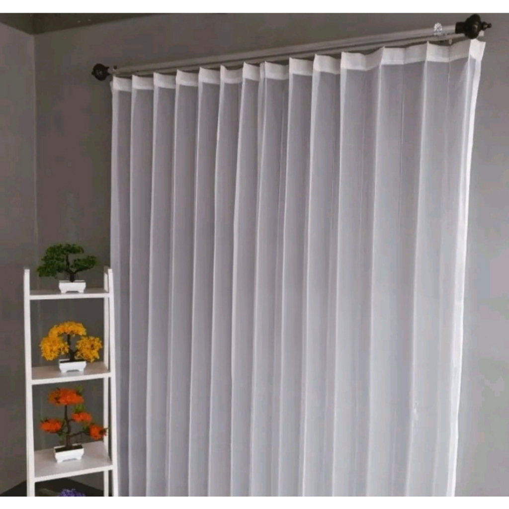 Gorden Vitrase Polos 200 x 250 cm Tinggi 3 meter Hordeng Putih Plisket Jendela Pintu Tirai Minimalis