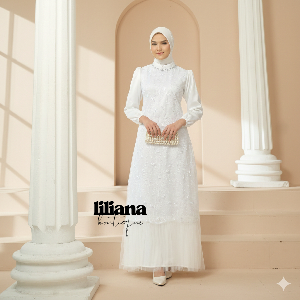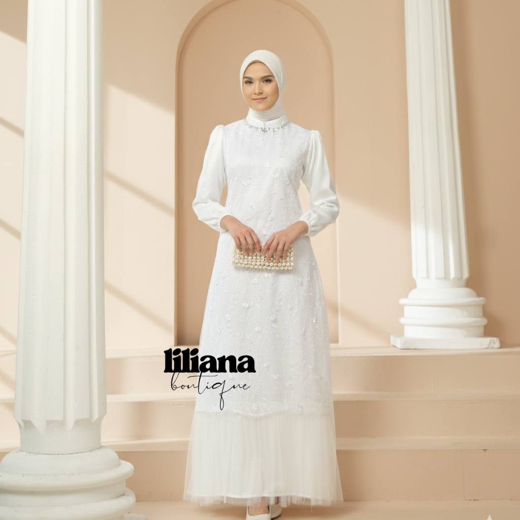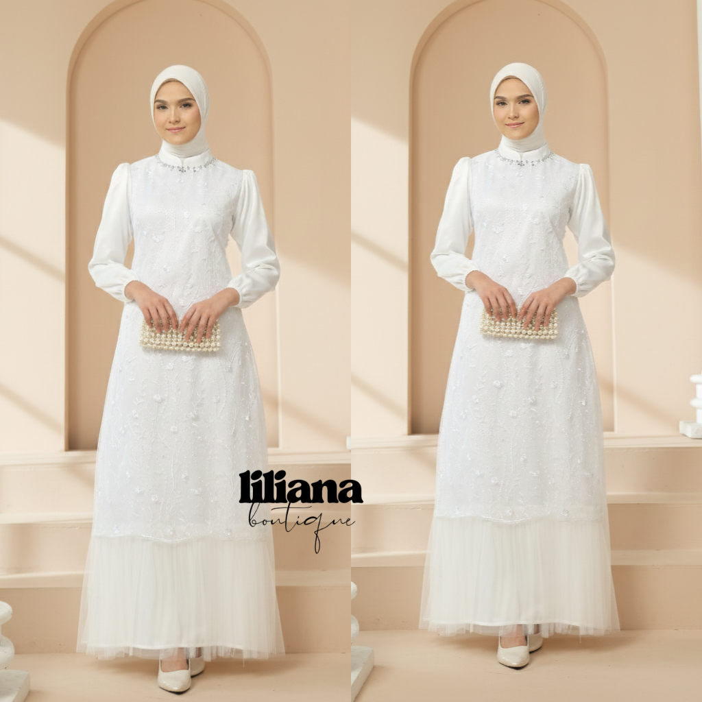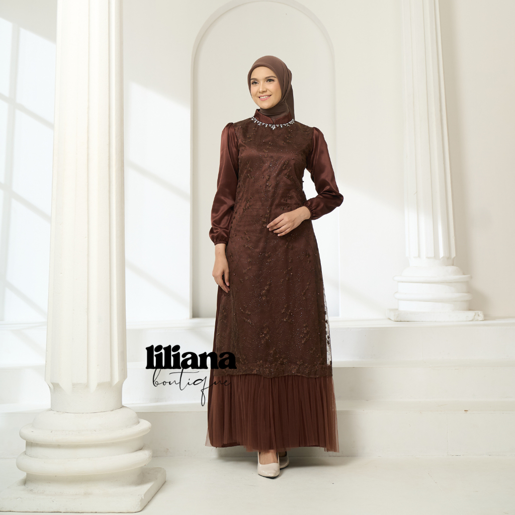 Aleeya Dress Gamis Lebaran 2026 Putih Burgundy Mahogany Brokat Seragam Keluarga Elegant