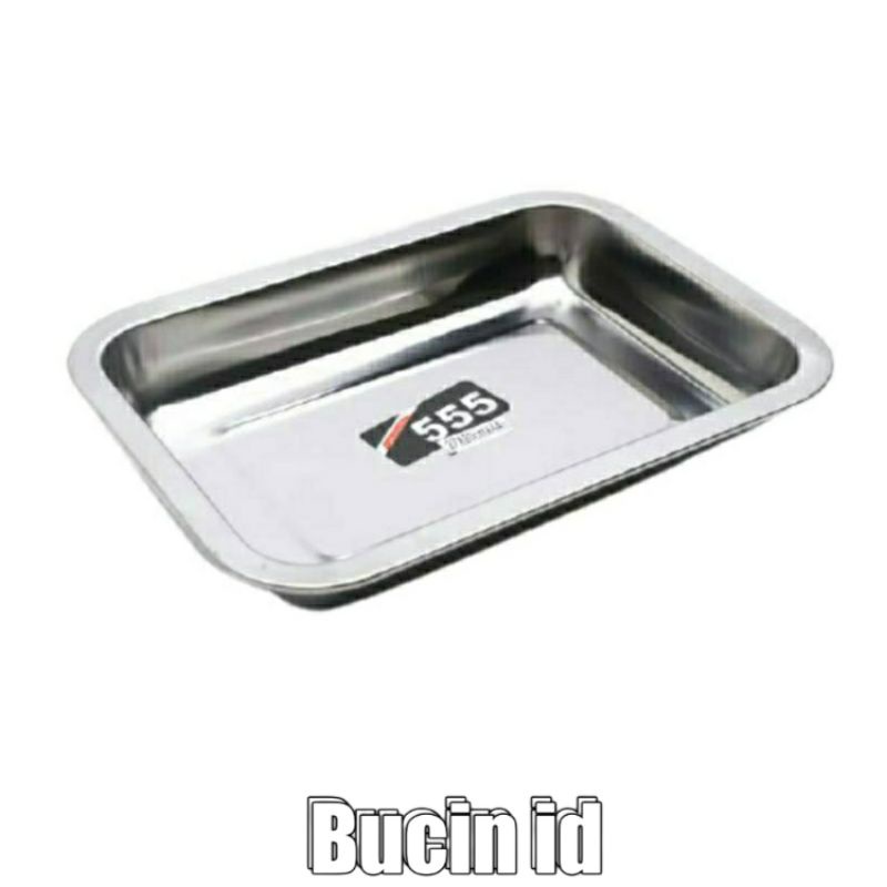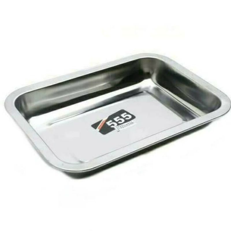 BUCIN. ID!! Nampan stainles steel 20 X 27 / wadah saji segi / wadah makanan