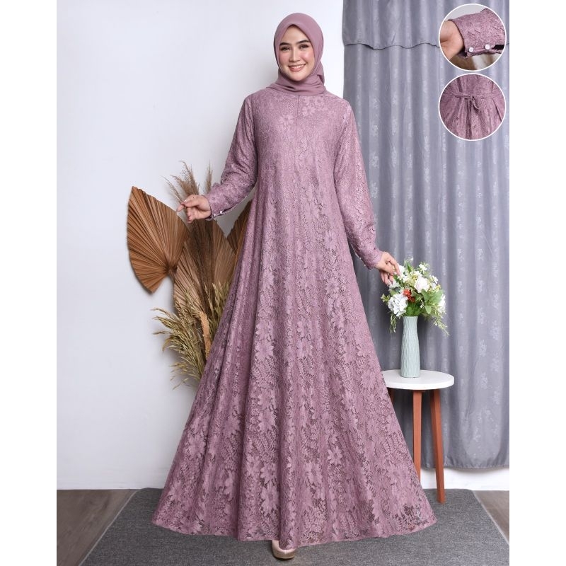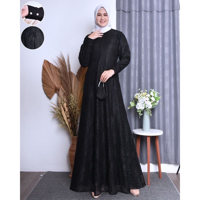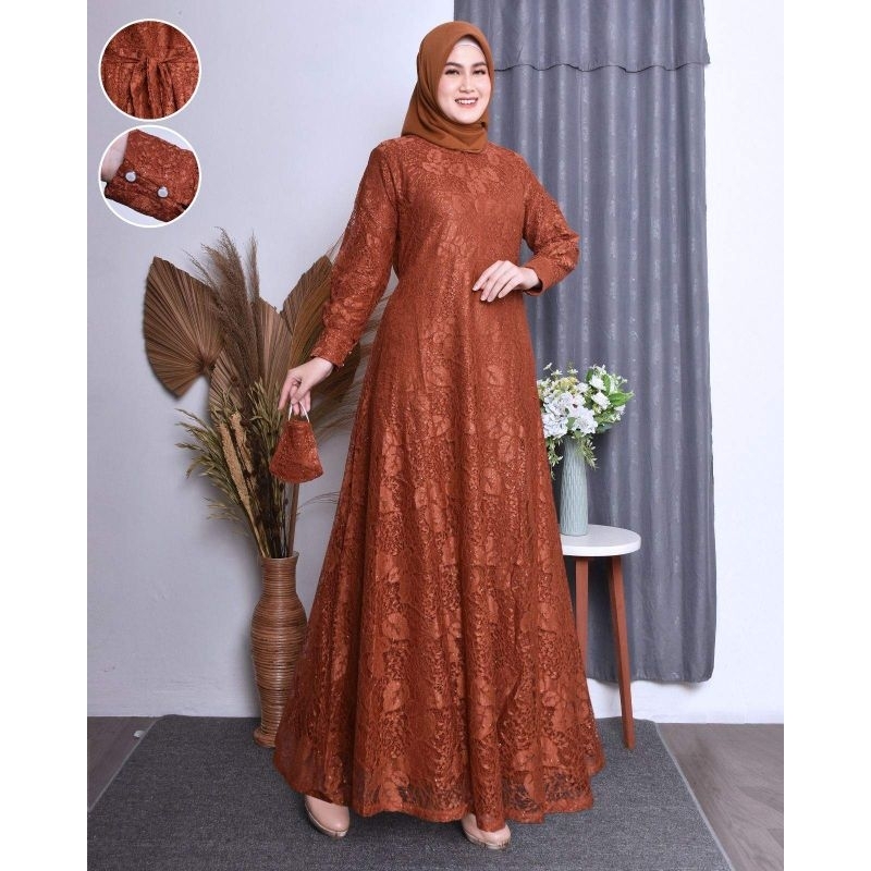 (COD) azalia mode gamis brukat gamis kondangan gamis jumbo ukuran dari M.L.XL.XXL.XXXL free masker