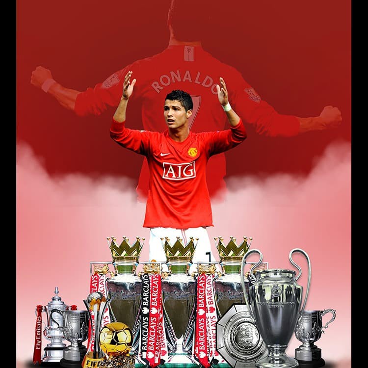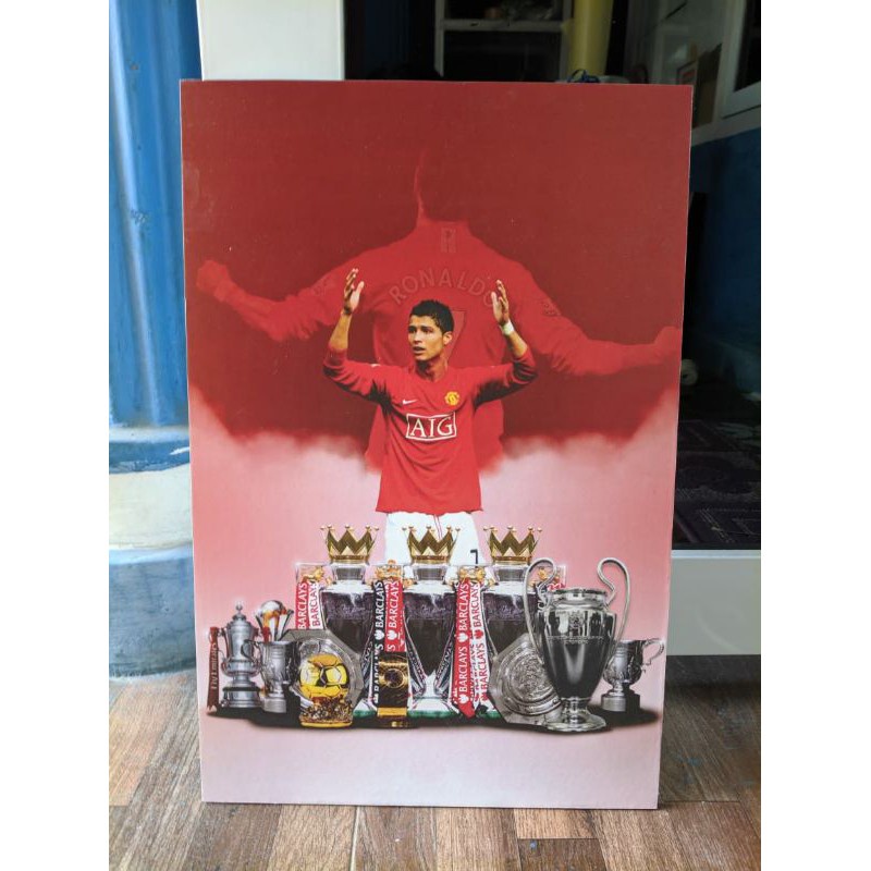 jaya dekor!! Poster Manchester United Frame kayu bola (20 x 30 cm) C RONALDO