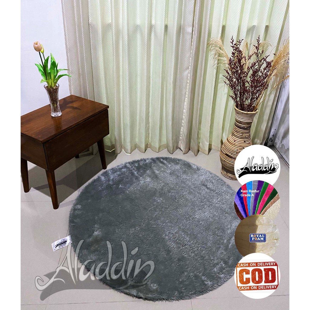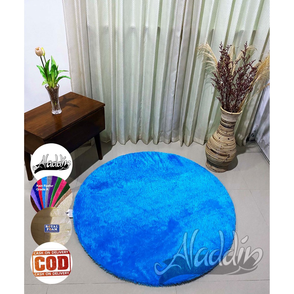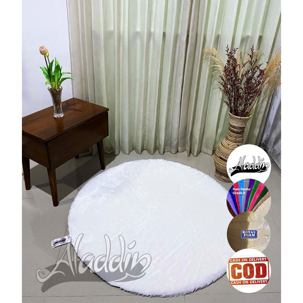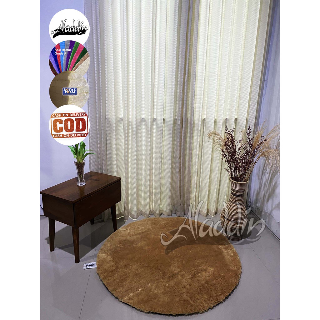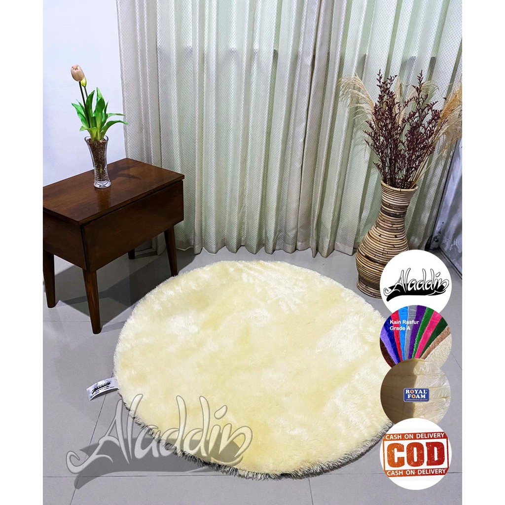 (ISI BUSA YELLOW) PROMO Aladdin Karpet Bulat Premium Bulu Rasfur Lembut (Diameter 85cm) GLOSSY Halus & Lembut / Kualitas Premium