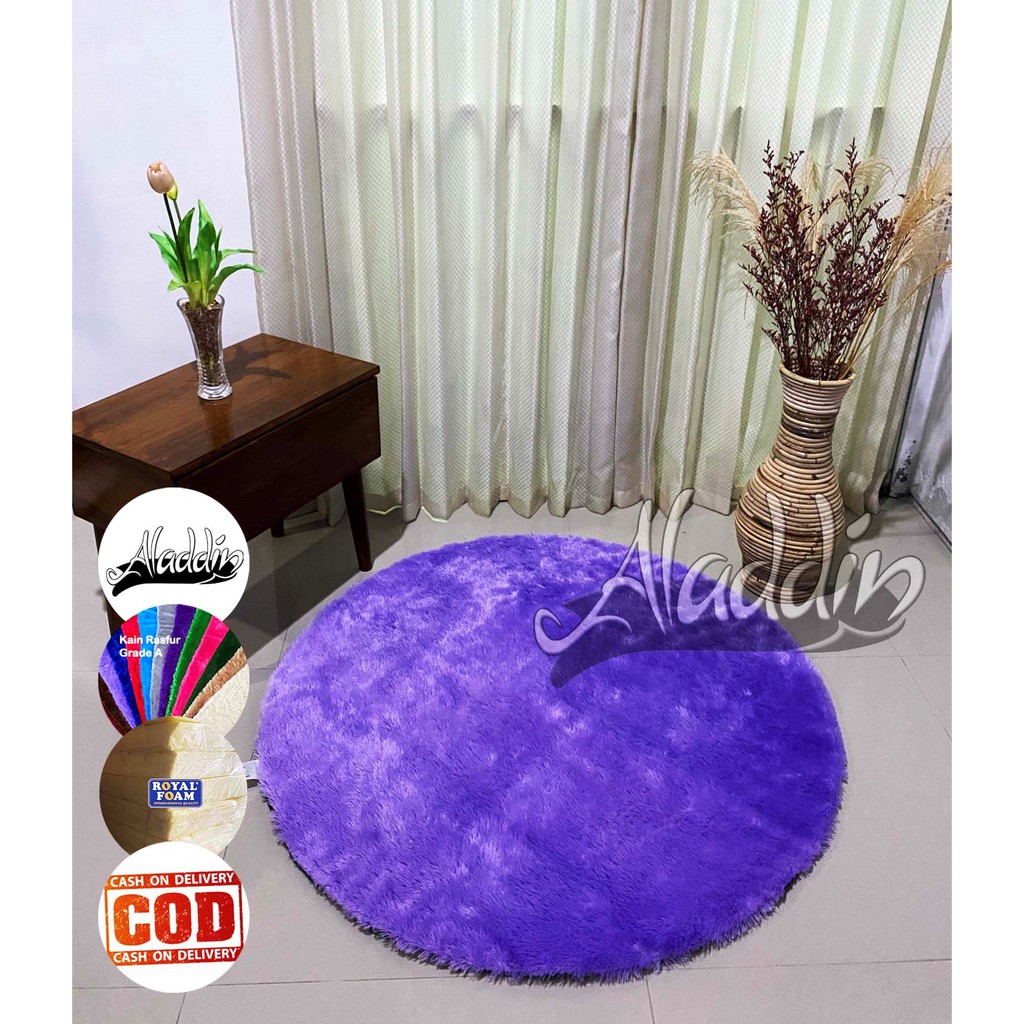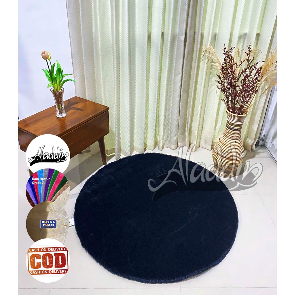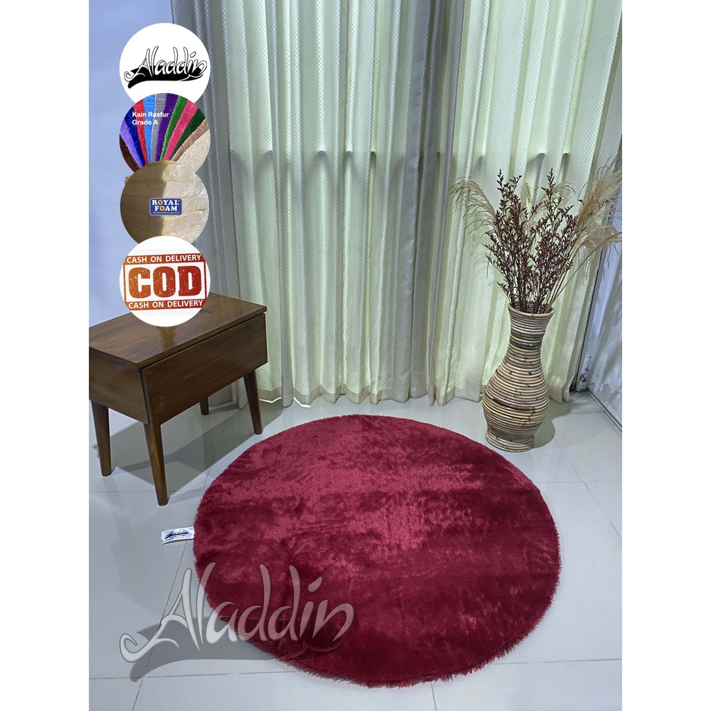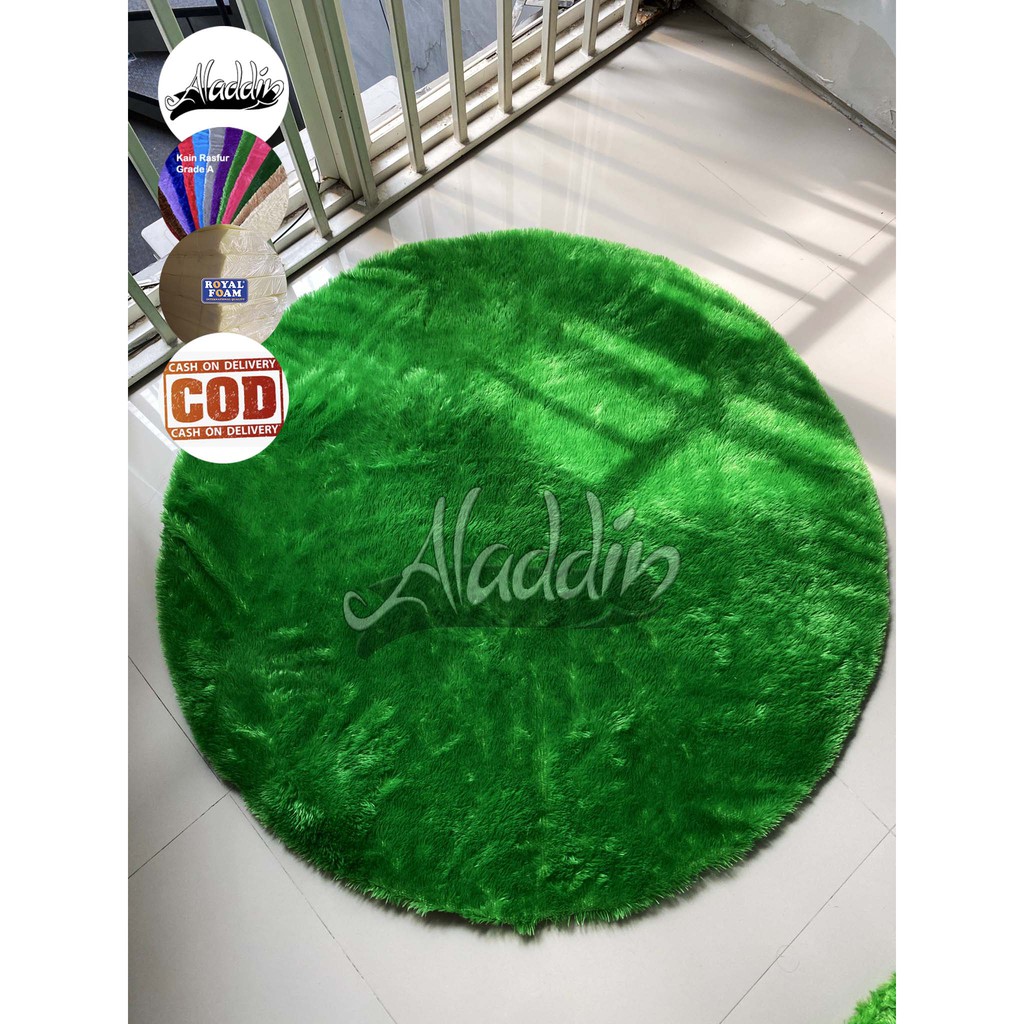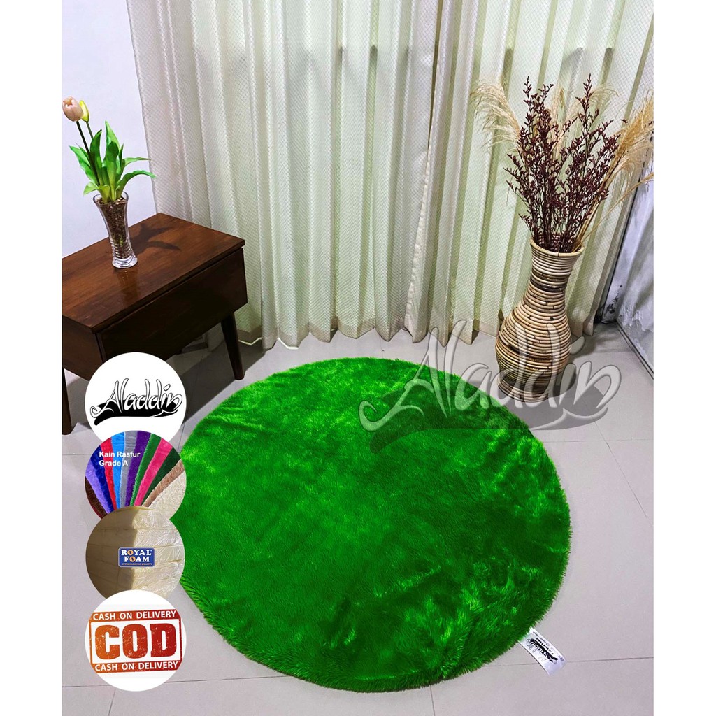 (ISI BUSA YELLOW) PROMO Aladdin Karpet Bulat Premium Bulu Rasfur Lembut (Diameter 85cm) GLOSSY Halus & Lembut / Kualitas Premium